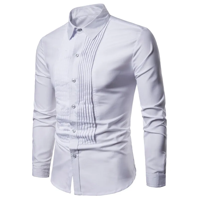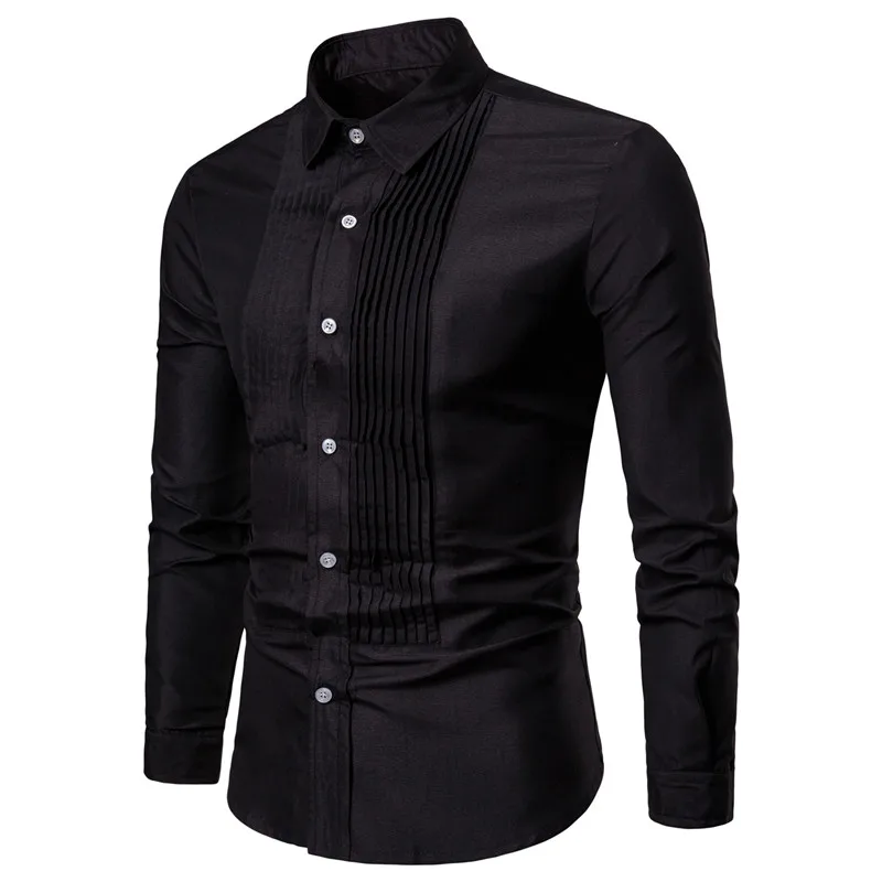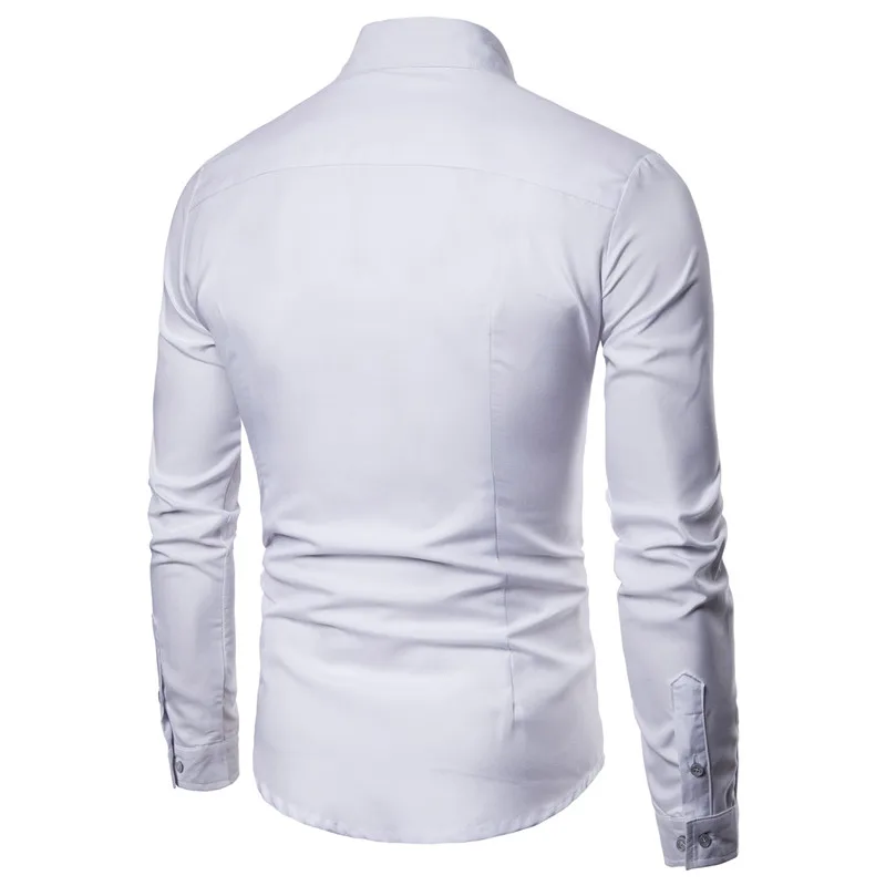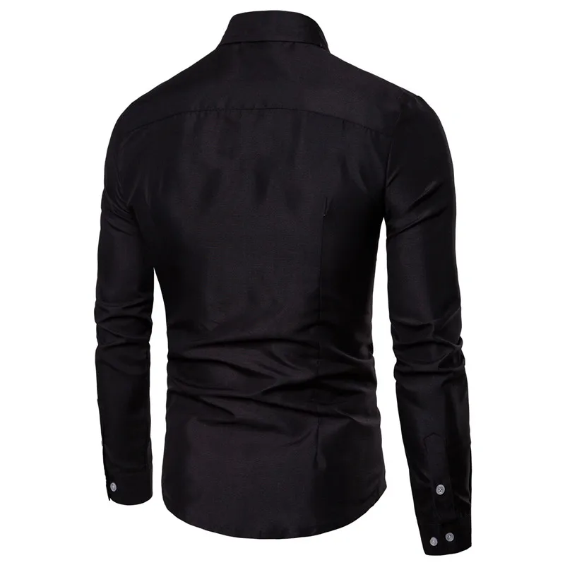 2019 New Designer Wedding Shirts For Men Long Sleeve Fashion Social Club Party Black White Men Dress Shirts Camisa Masculina