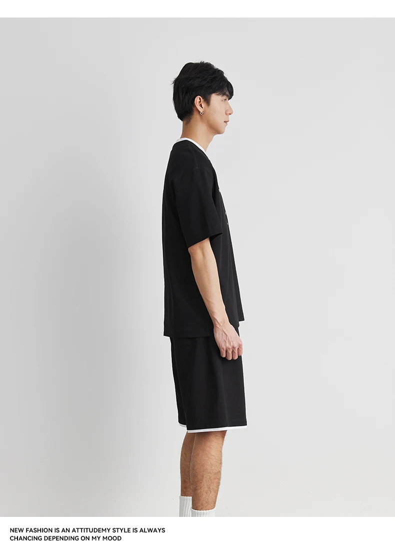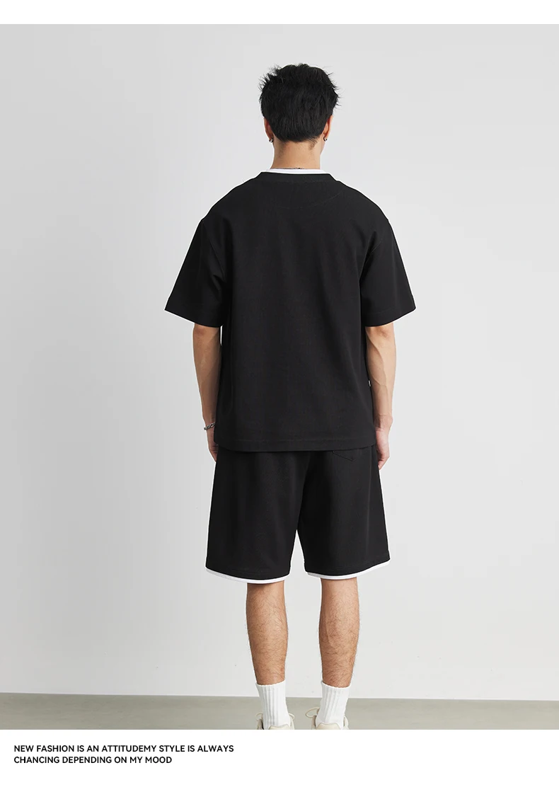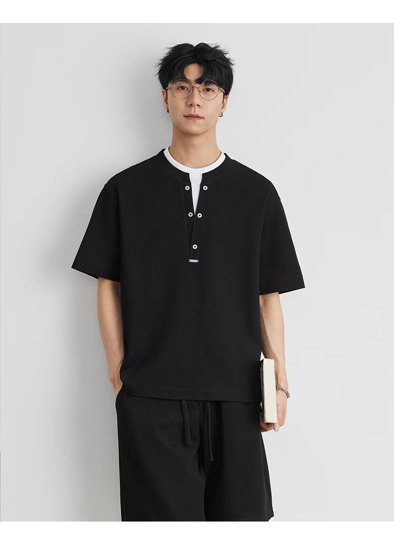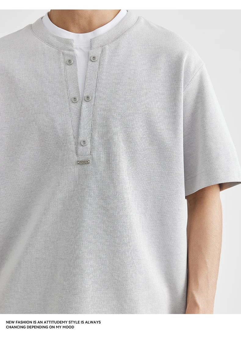2025 New Men's Sports Suit Henry Collar Two-piece Casual Outdoor Loose Short Sleeve Shorts Fashion Korean Men's Summer Suit