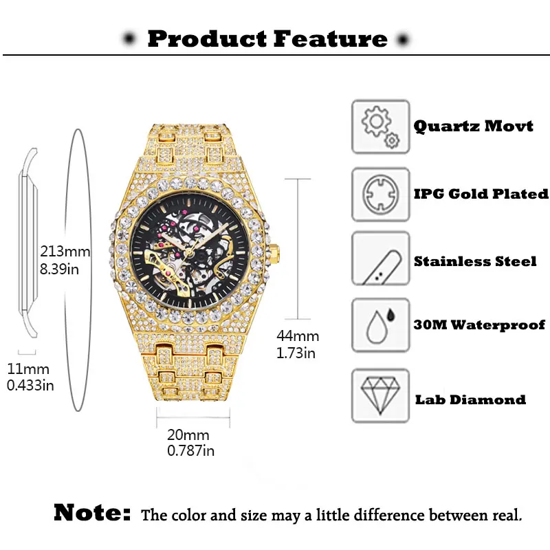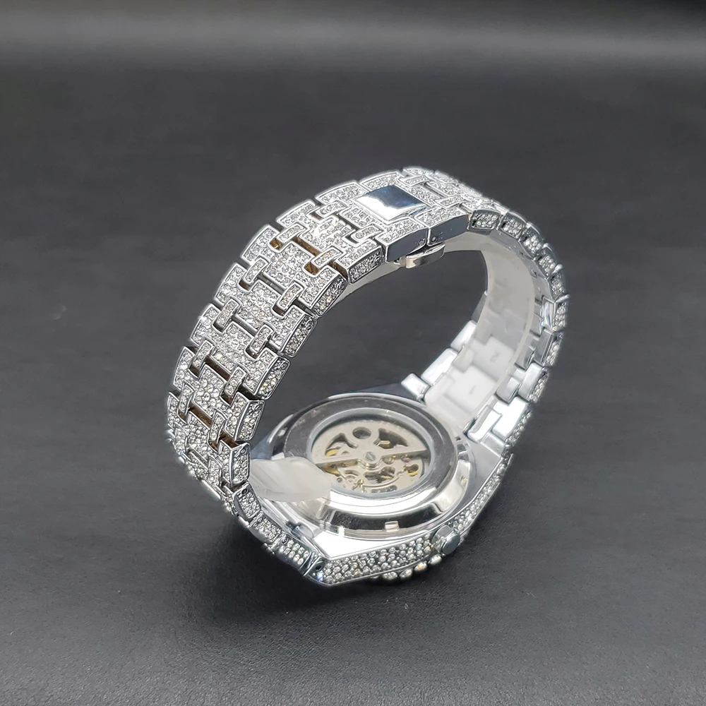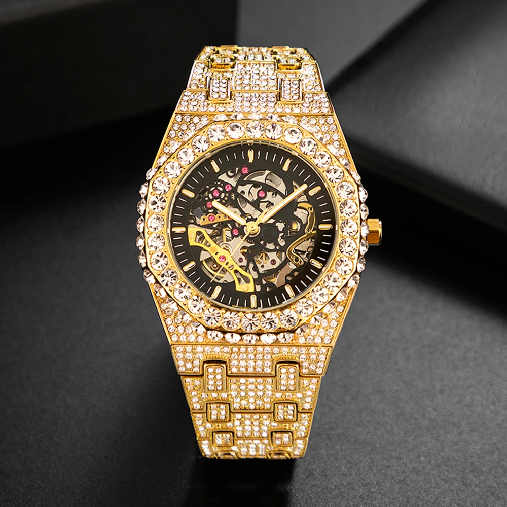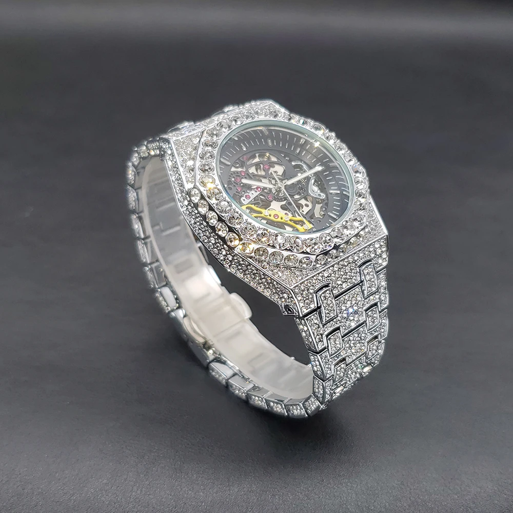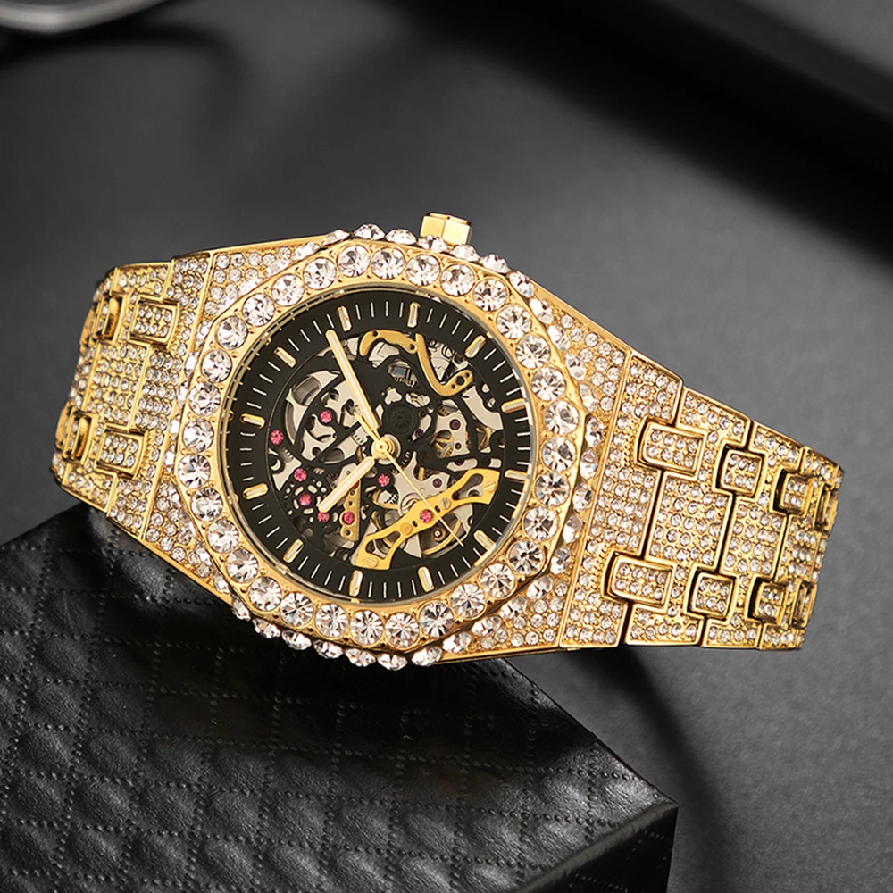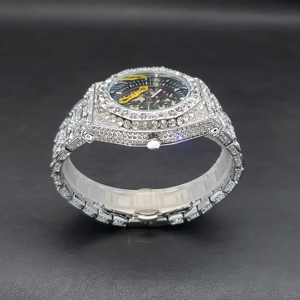 Automatic Watch For Men Luxury Full Ice Out Business Tourbillon Watches Bling Diamond Gold Male Mechanical Wristwatch Hot Sale