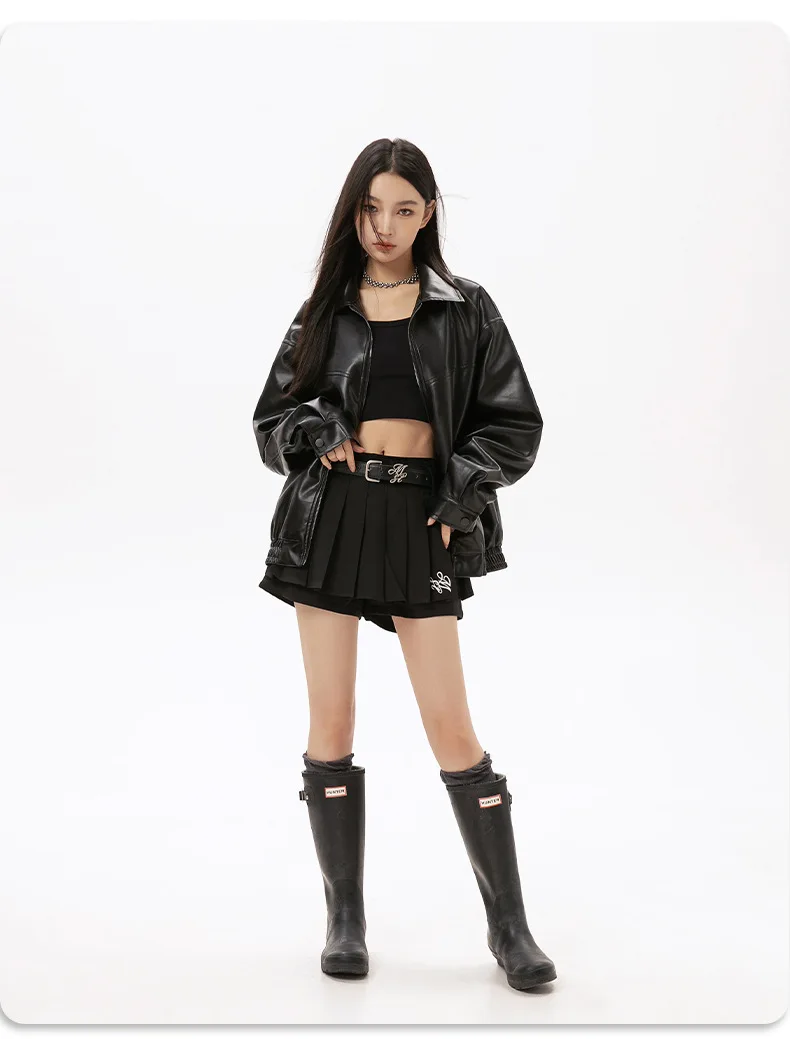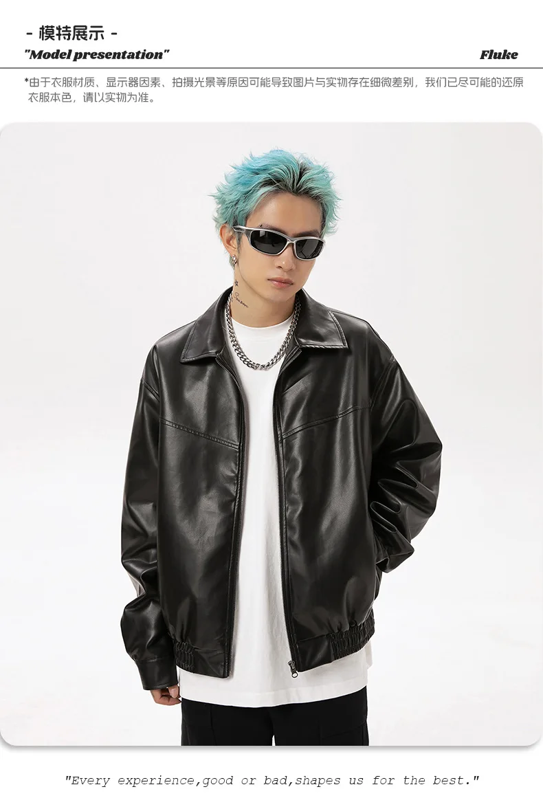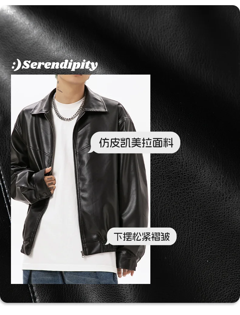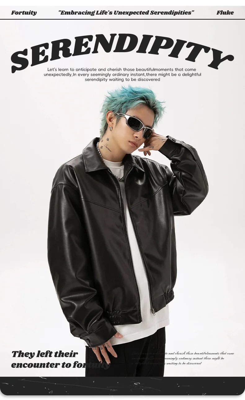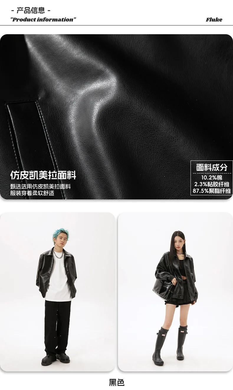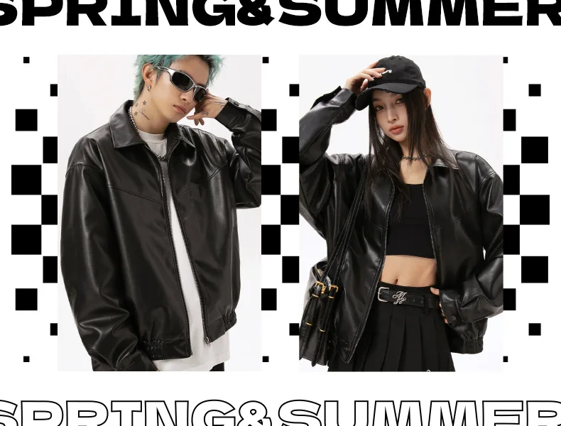 Black leather jacket for both men and women - new autumn product of retro fashion brand - trendy high street jacket for couples