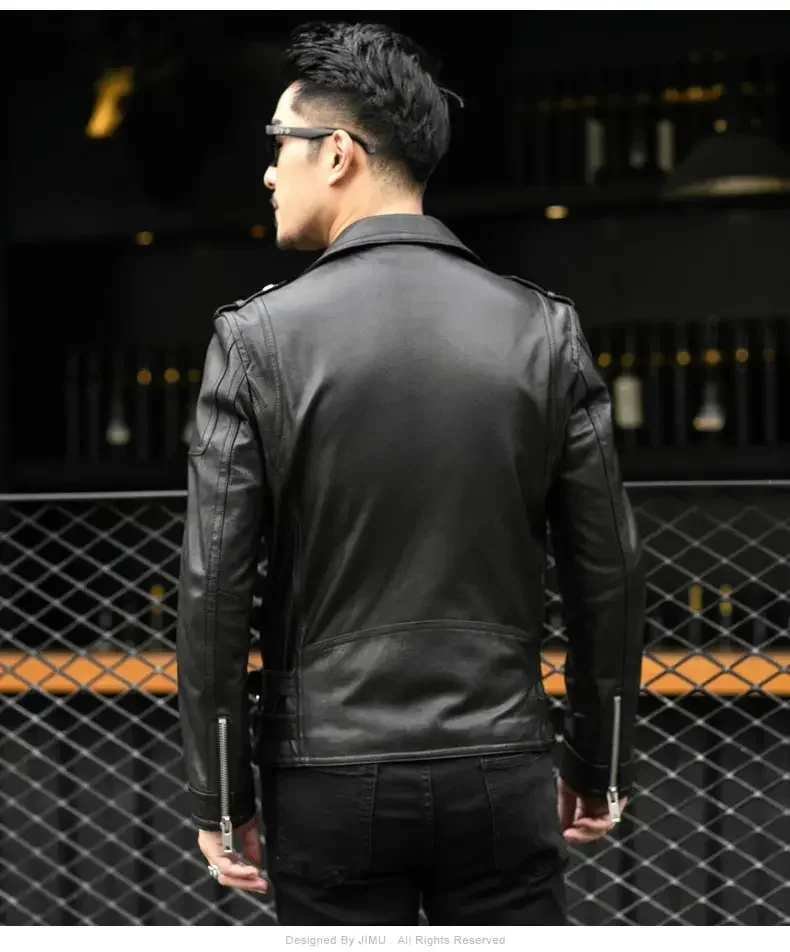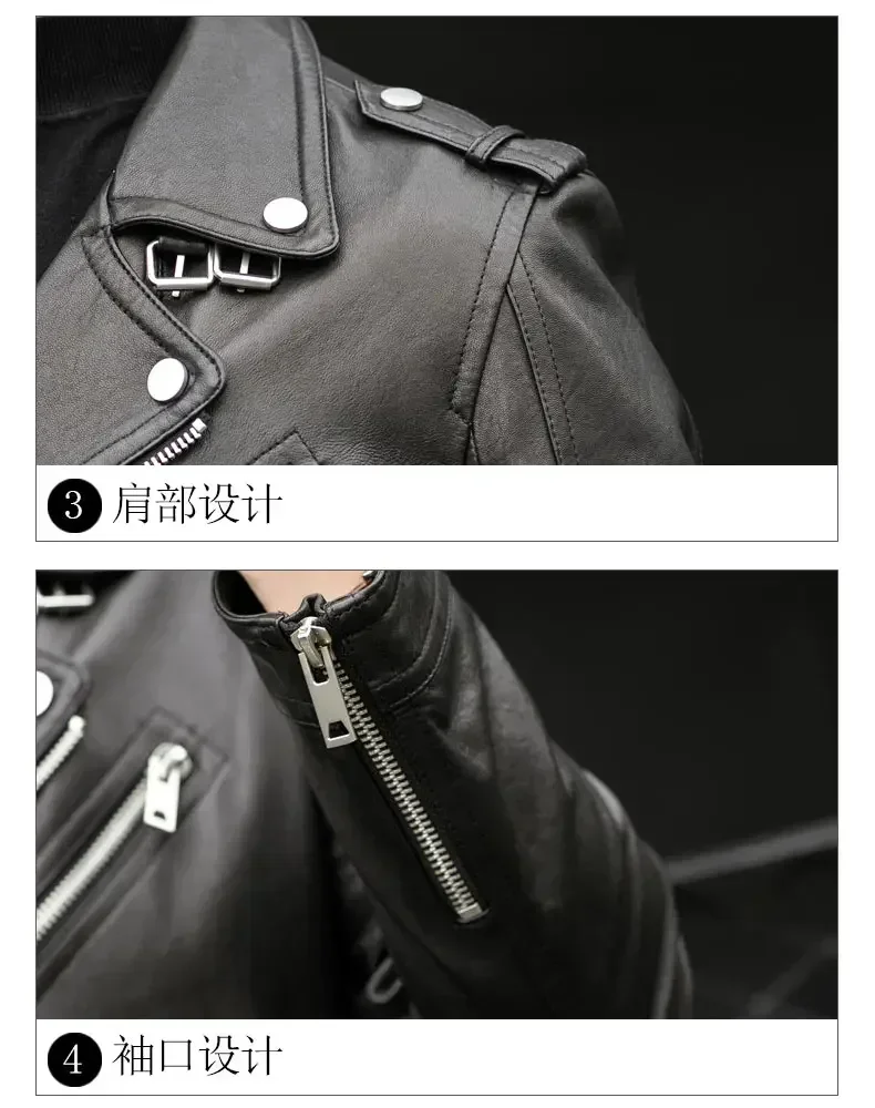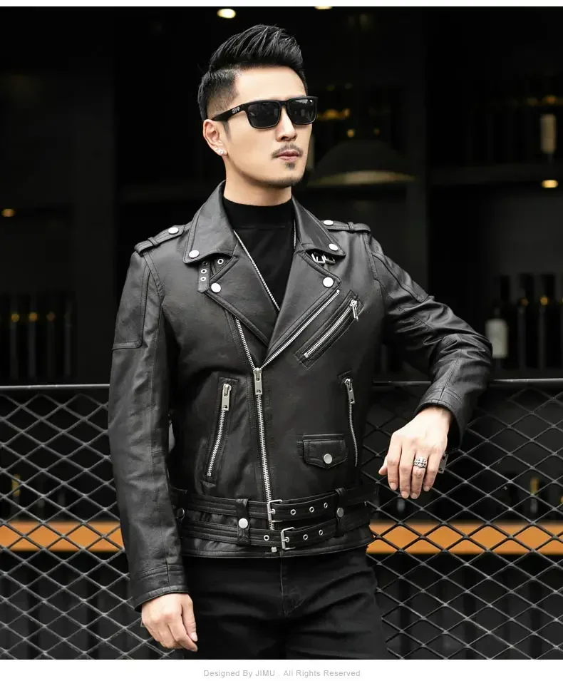 Brand Leather Jackets European Fashion Spring Autumn Short Cool Black Leather Biker Jacket Men Zipper Long Sleeve Belt Plus Size