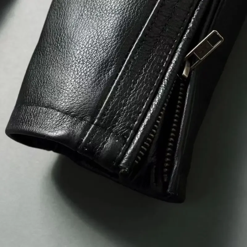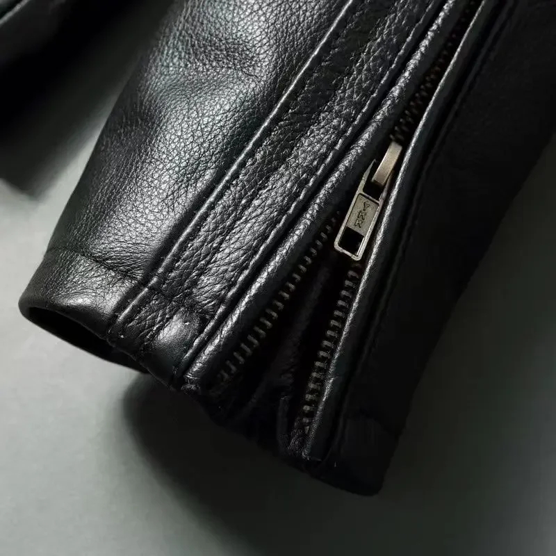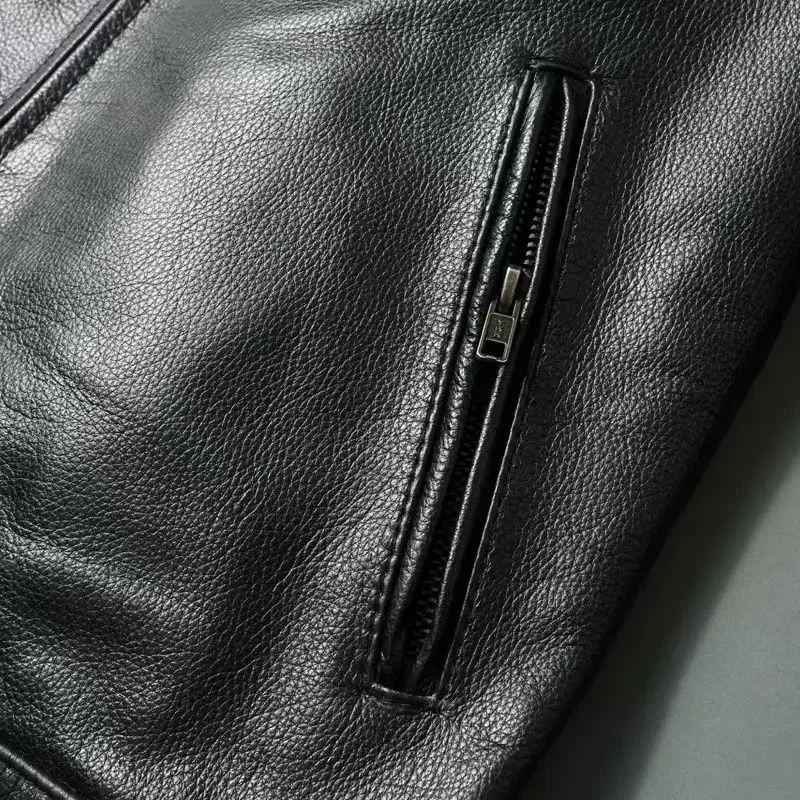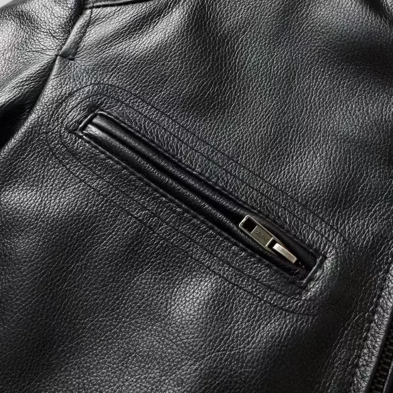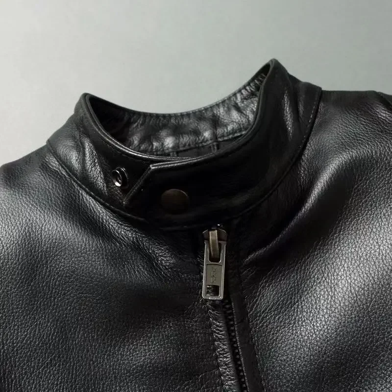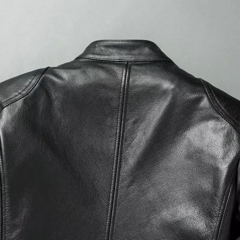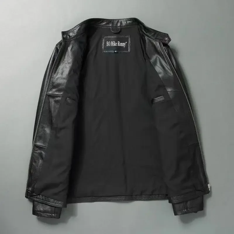 Genuine Leather Jacket Men 100%Cowhide Slim Fit Stand Collar Autumn Winter Cycling Casual Real Leather Cotton Padded Jacket Man