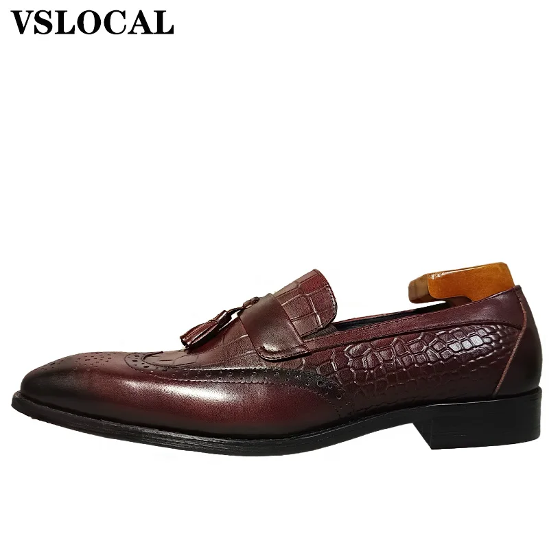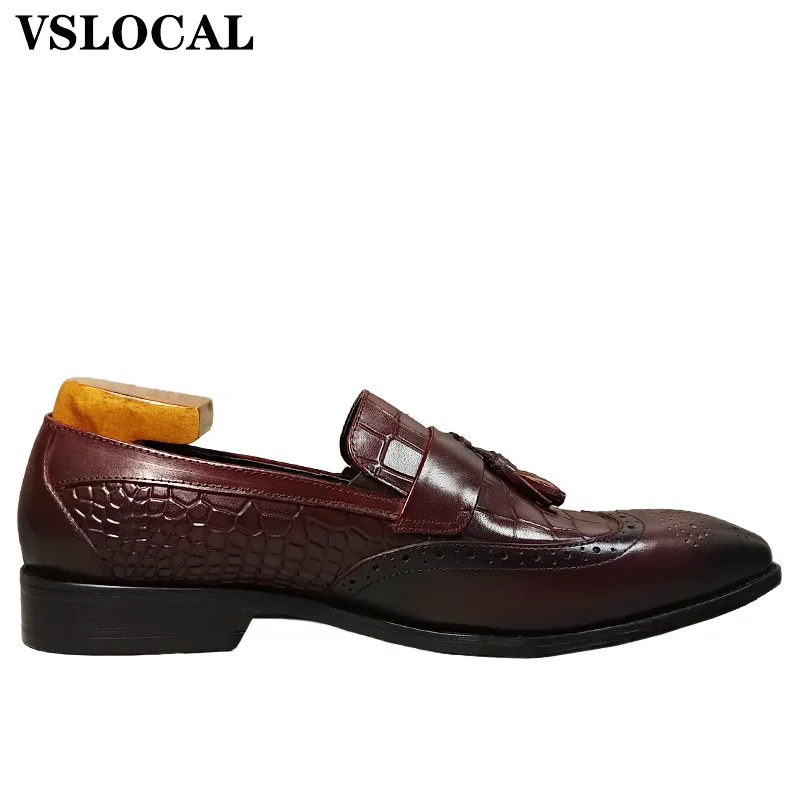 Italian Mens Shoes Blue Black Burgundy Wing Tip Casual Men Dress Shoes Loafers with tassels Leather Slip on Loafers Man