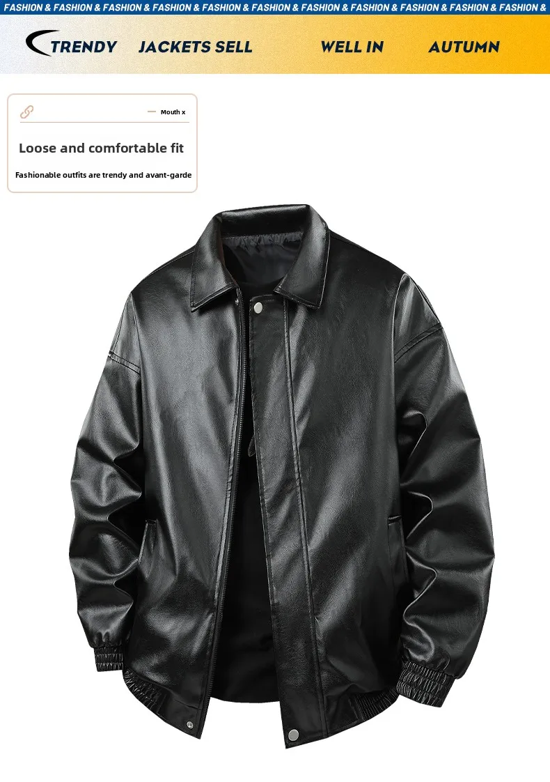Jacket men's loose leather jacket locomotive suit men's gangster handsome hip-hop European and American street trend jacket