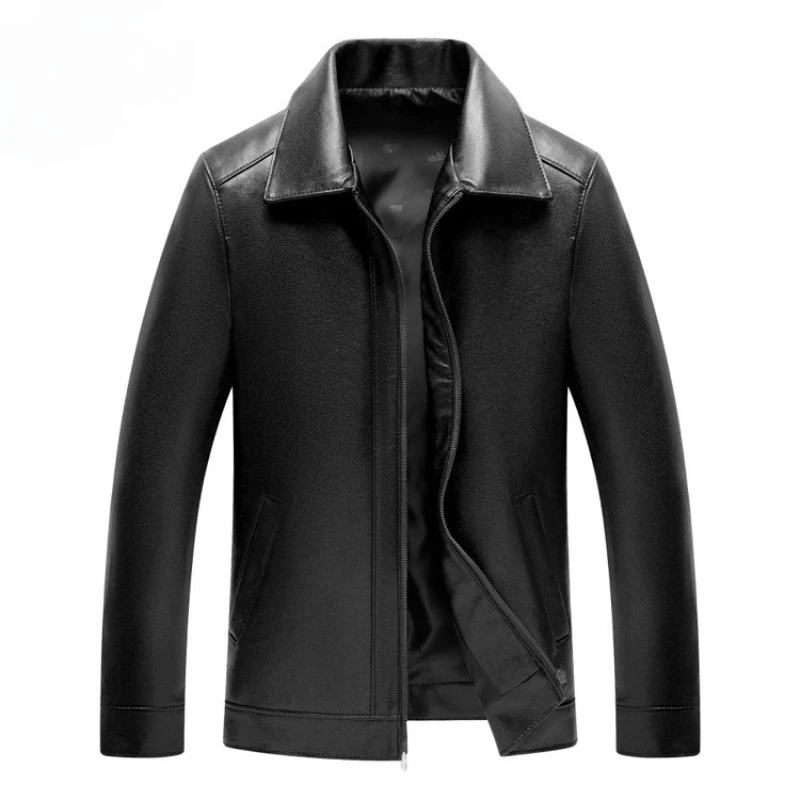Lapel Leather Jacket for Men's Lapel Trendy Handsome High-end PU Motorcycle Men's Spring and Autumn Leather Jacket