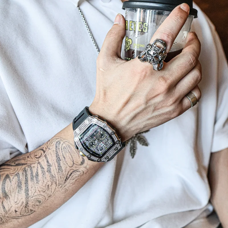 Large dial wine barrel shaped watch for men, authentic high-end mechanical watch, men's high-end feel, fully automatic pure mech