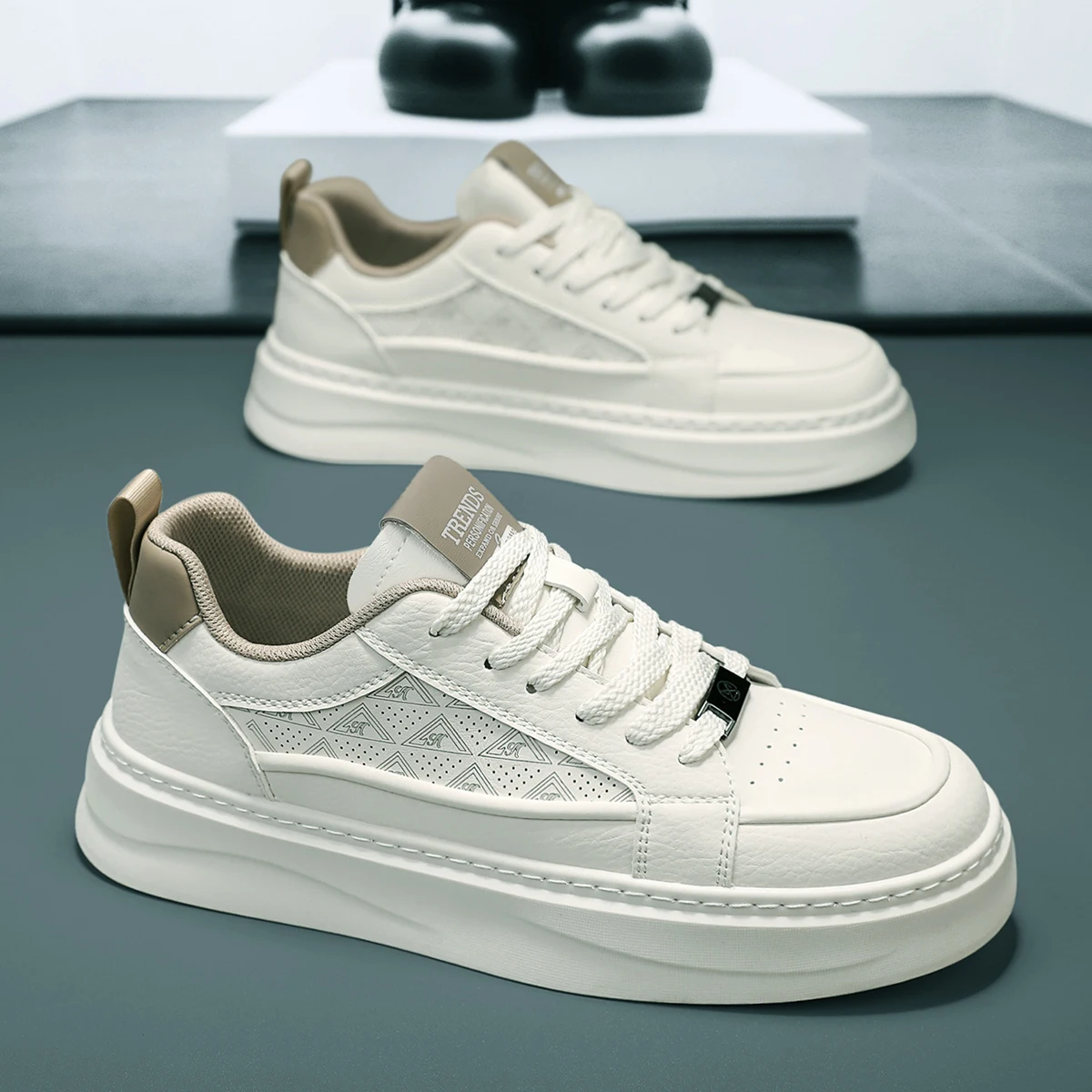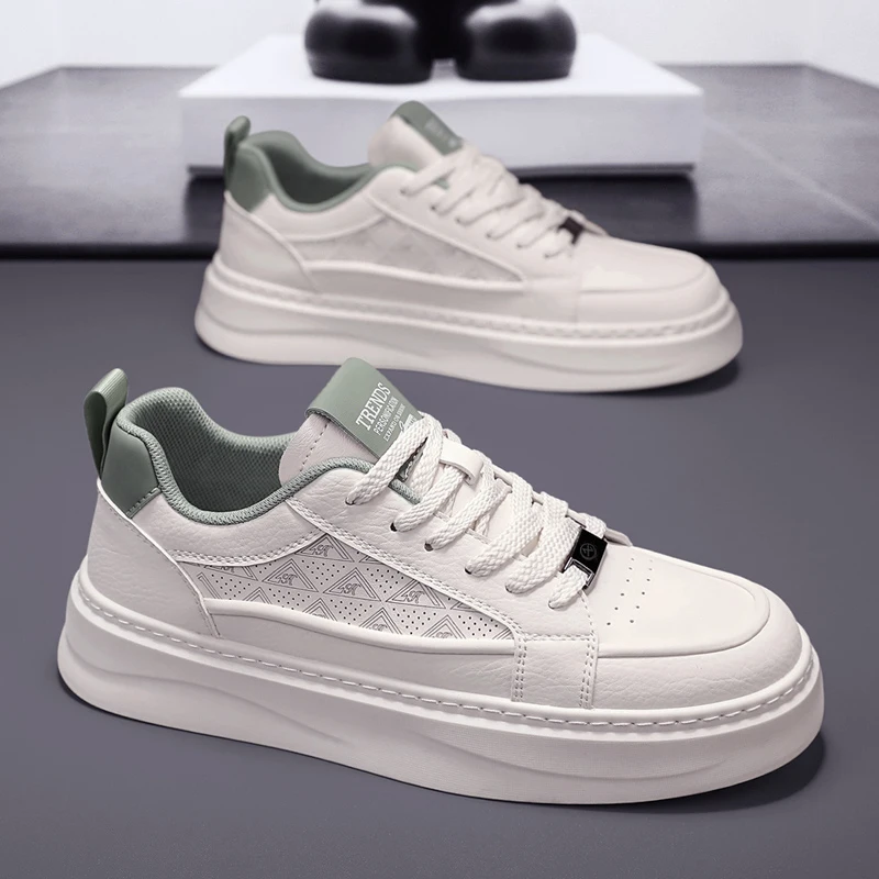 Men's sports shoes, punched sports shoes, white shoes, niche Korean version, versatile casual shoes, board shoes, trendy shoes,