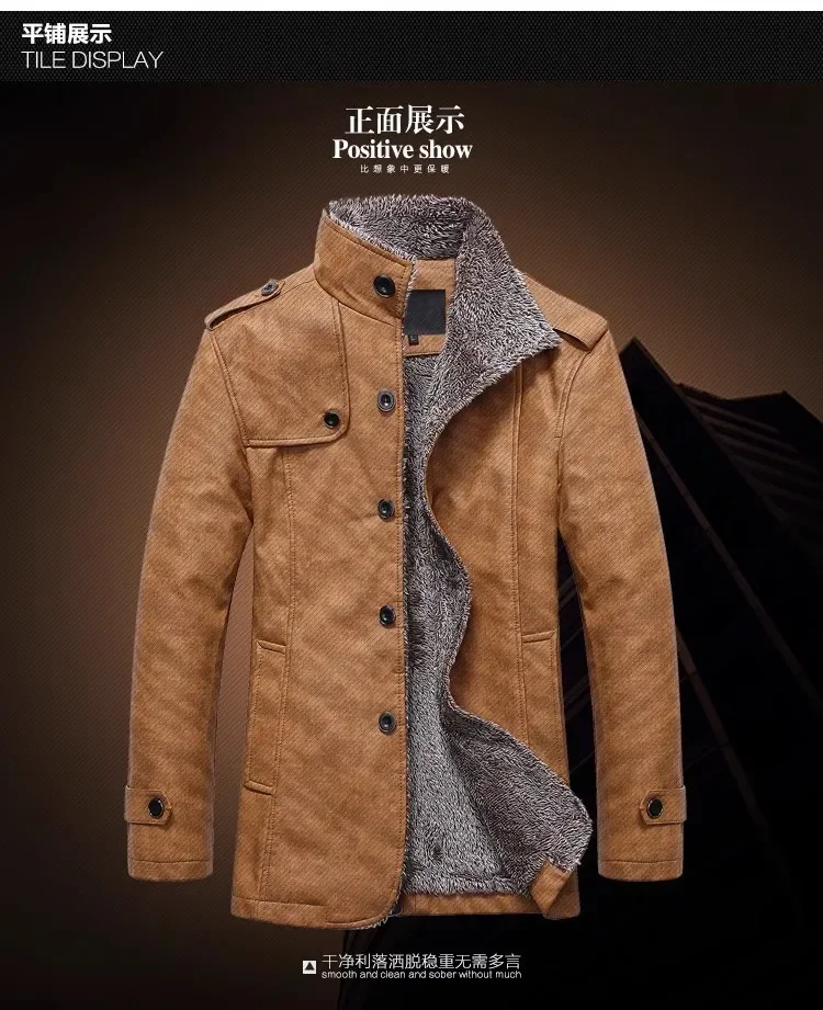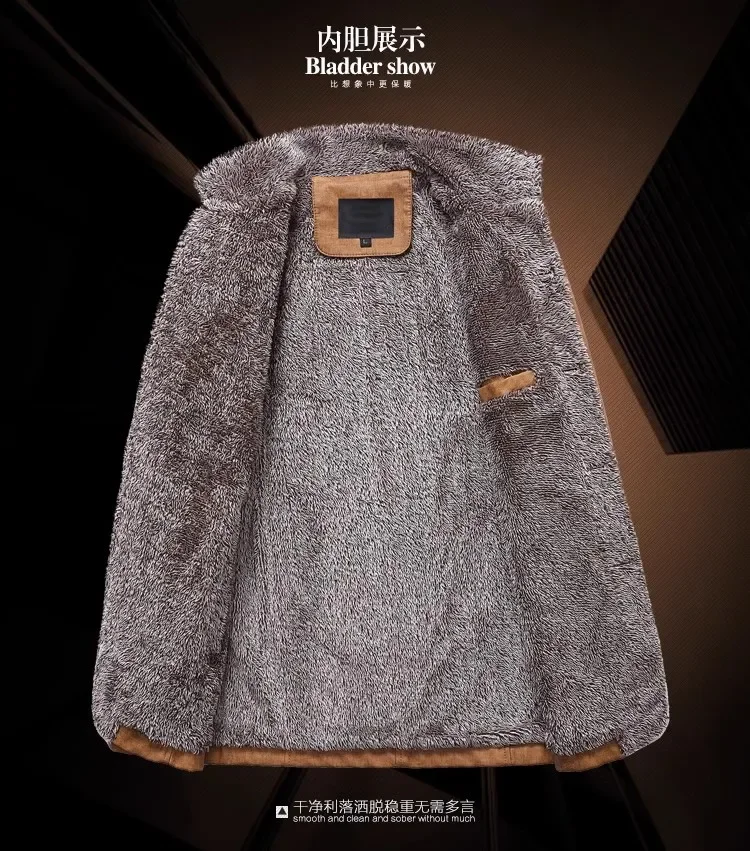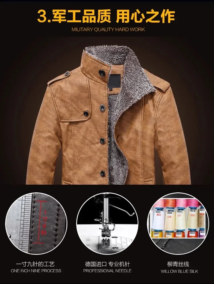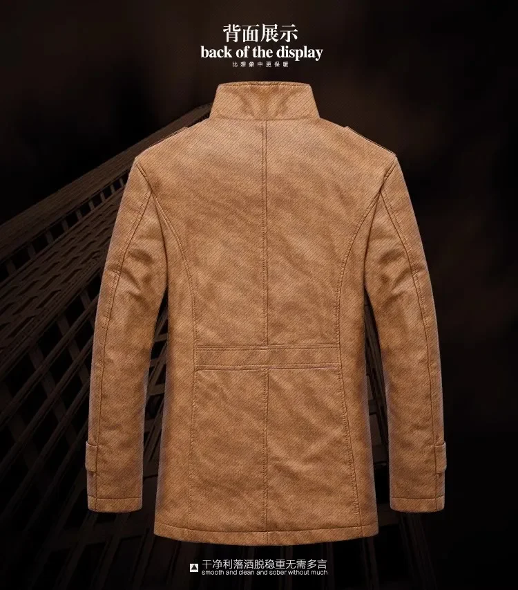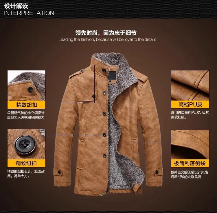 New Men's Leather Suit Jacket Slim Plus Fleece Coat Fashion Mid-long PU Leather Jacket Streetwear Men Casual Warm Outerwear
