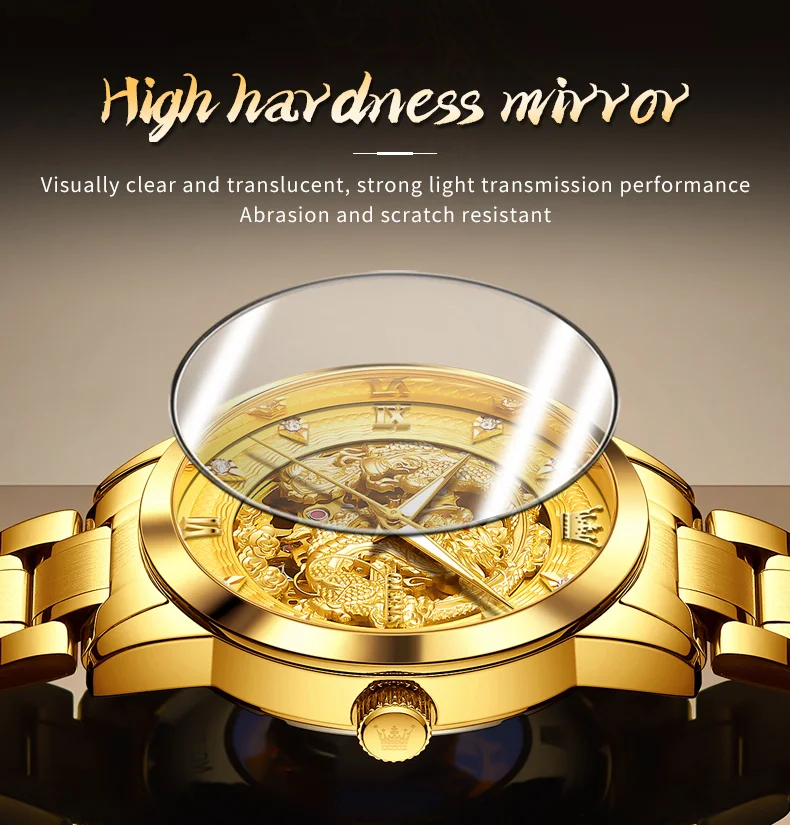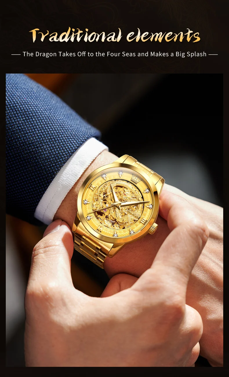OLEVS Japan Automatic Mechanical Men's Watches High-end Luxury Brand Original Stainless Steel Hollowed Dragon Watch for Men 7027