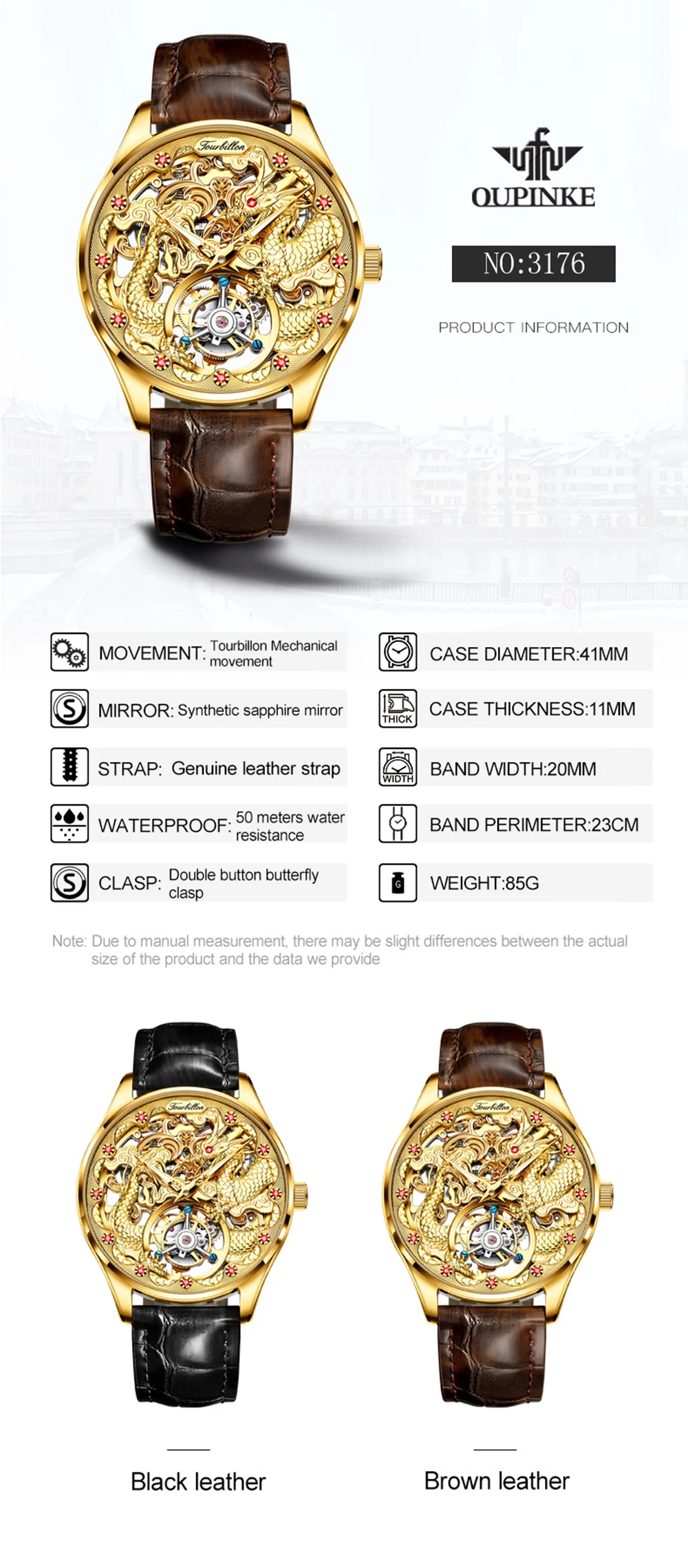OUPINKE 3176 Luxury Men Original Fully Automatic Watch Swiss Certified High end Mechanical Watch Leather Strap Waterproof Watch