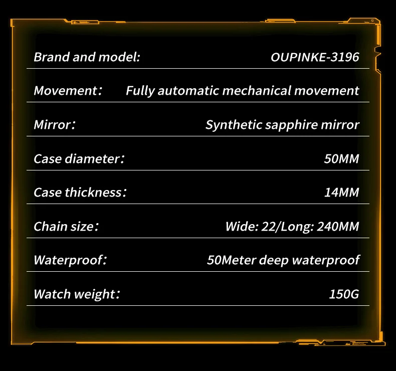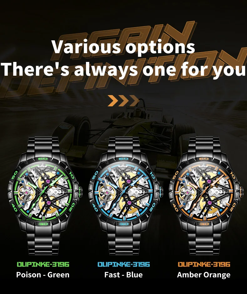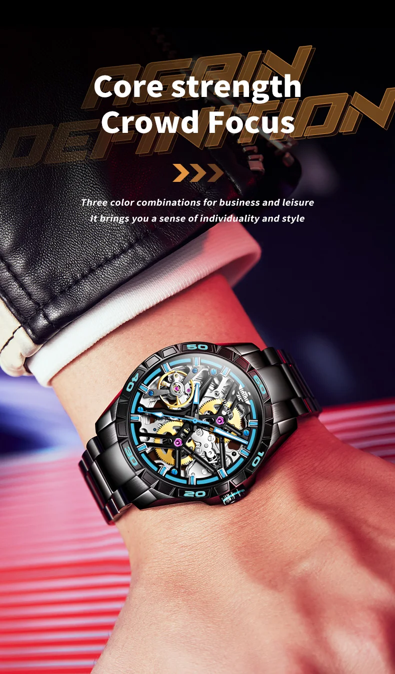 OUPINKE 3196 Luxury Business High Quality Mens Watch Skeleton Automatic Mechanical Watch 50M Waterproof Luminous Sports Watches