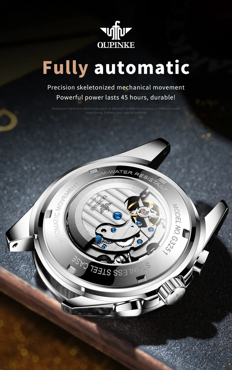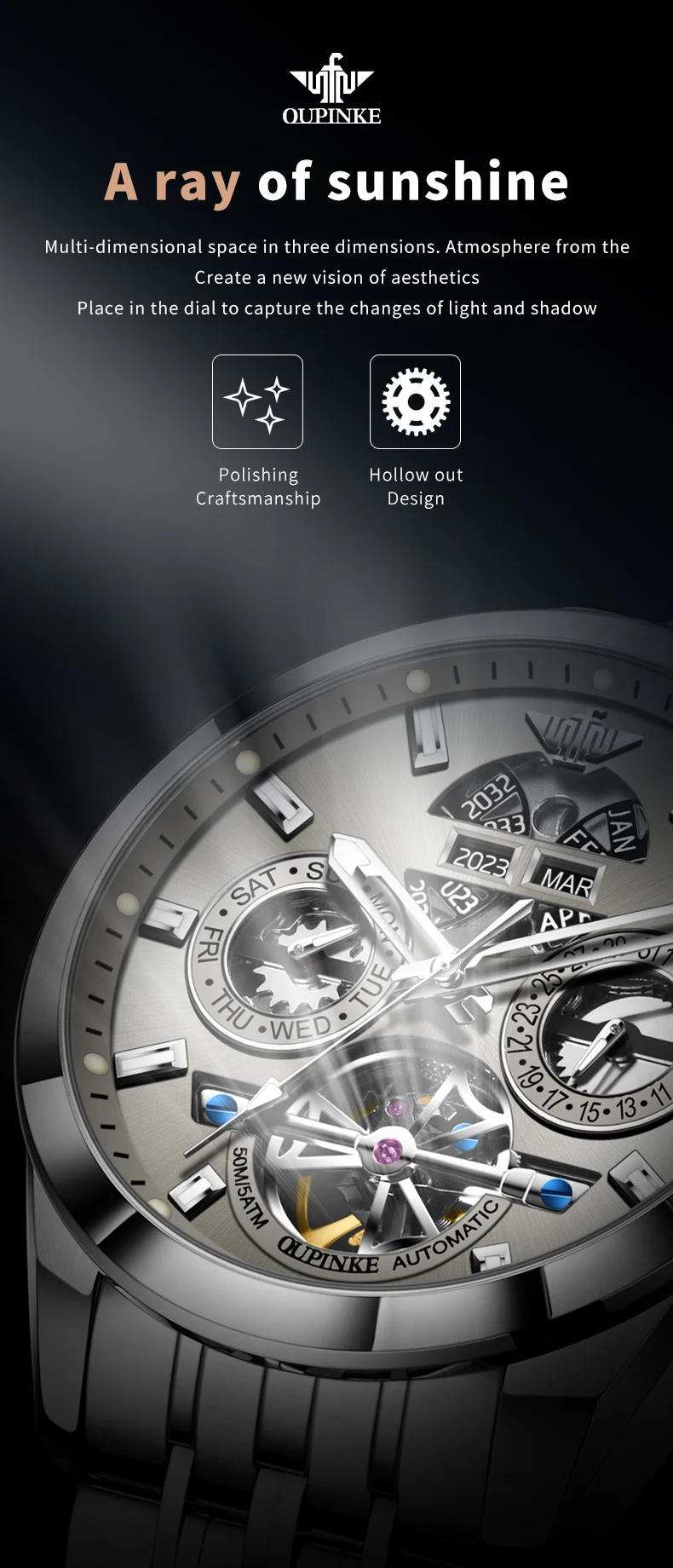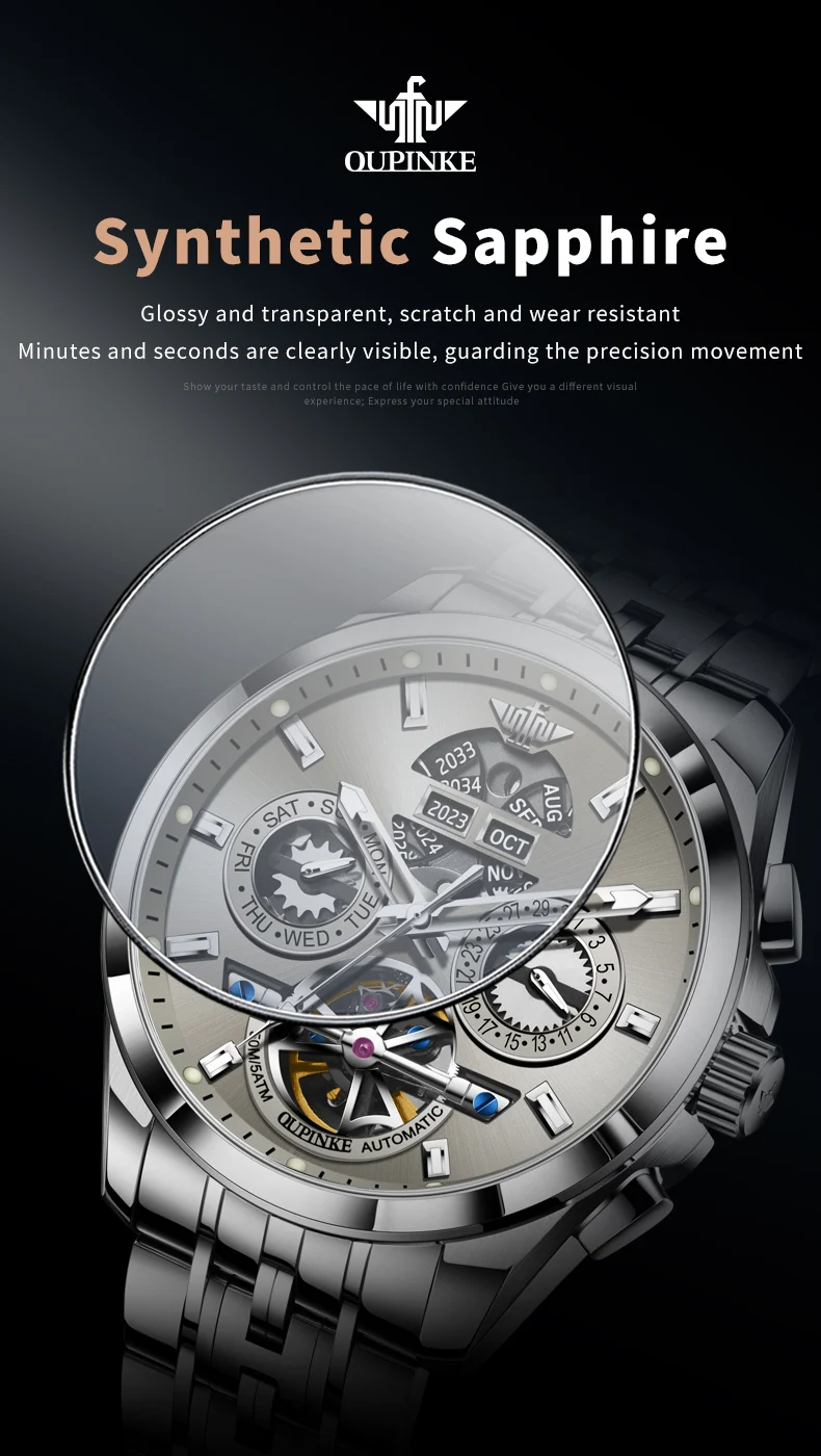 OUPINKE 3251 Mens Watch Luxury Sapphire Glass Tourbillon Mechanical Watch Tungsten Steel 50M Waterproof Watch For Man Gift Box