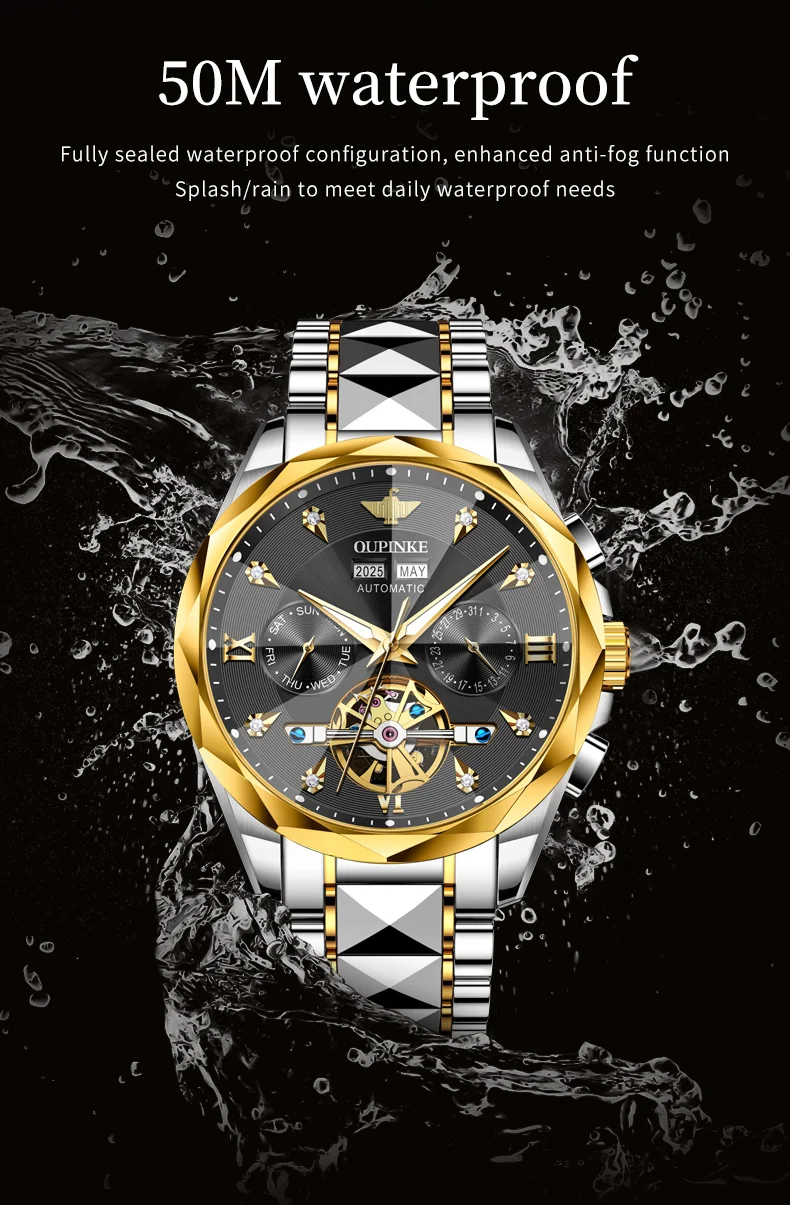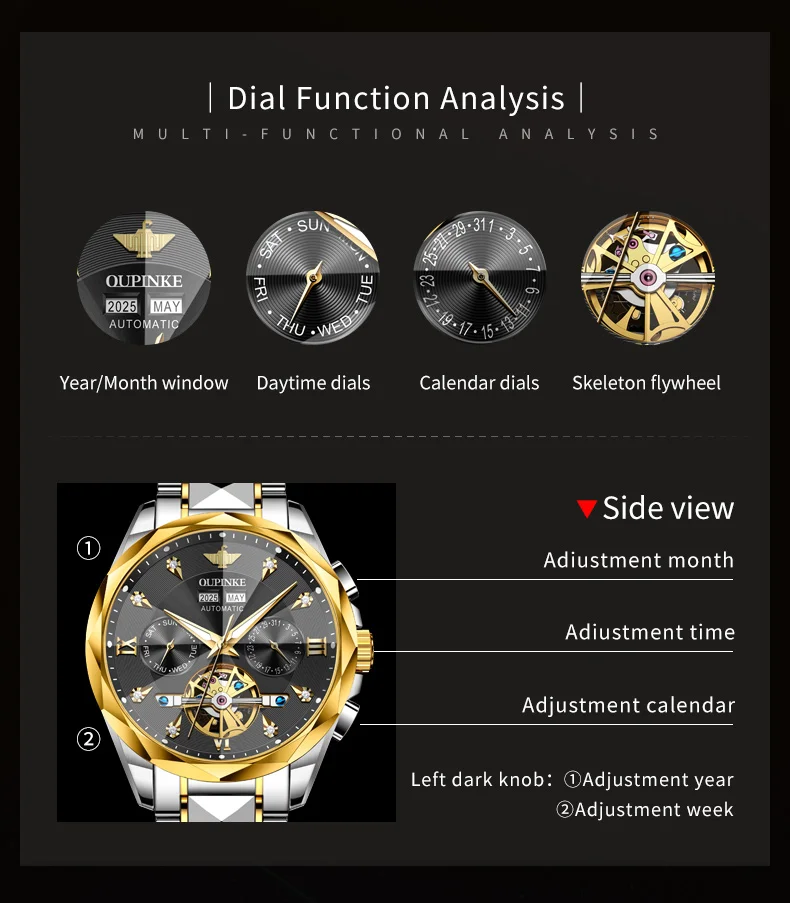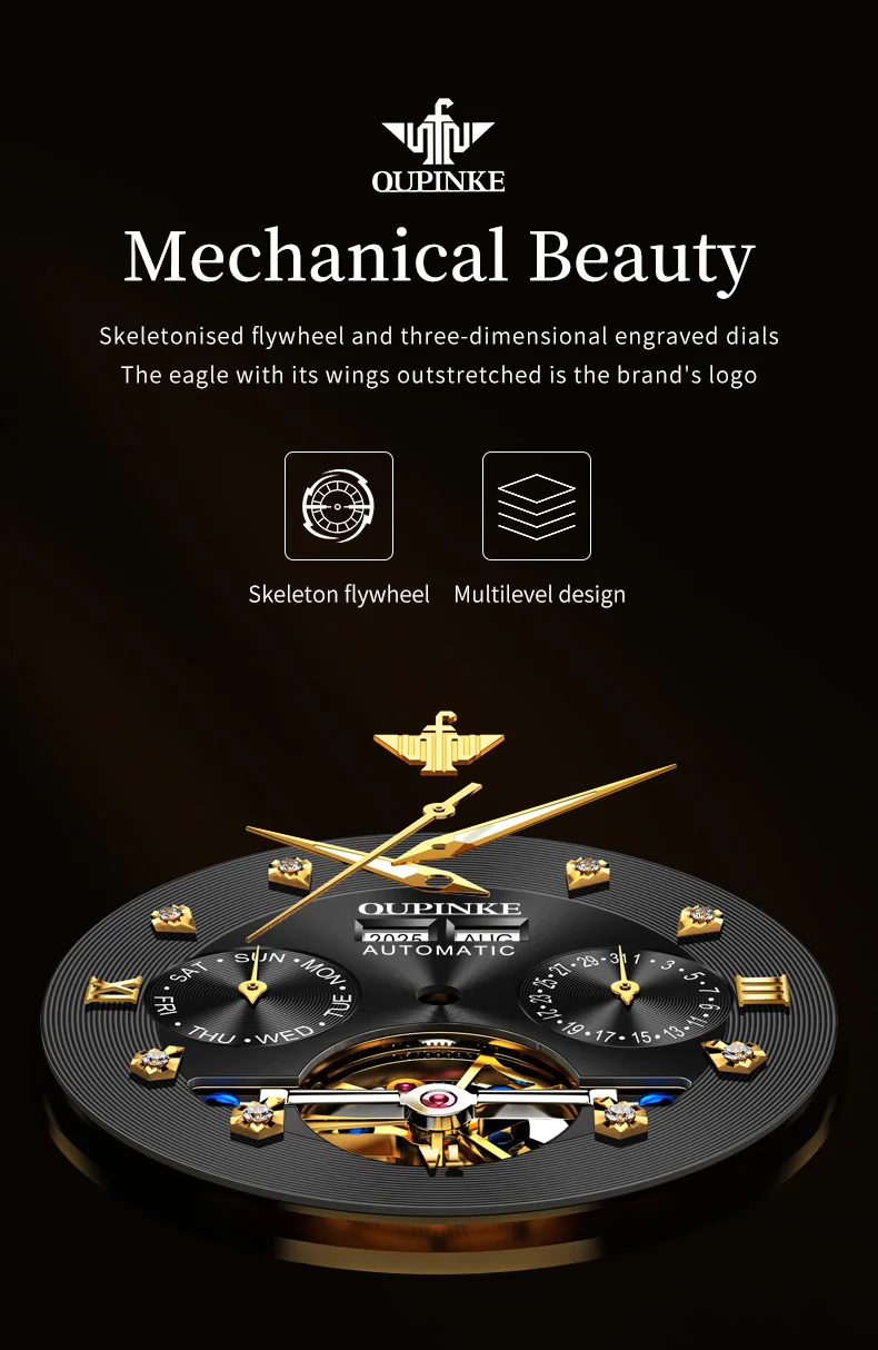 OUPINKE 3316 Automatic Mechanical Watch Classic New Version Watches for Men High-end Large Dial Wristwatch