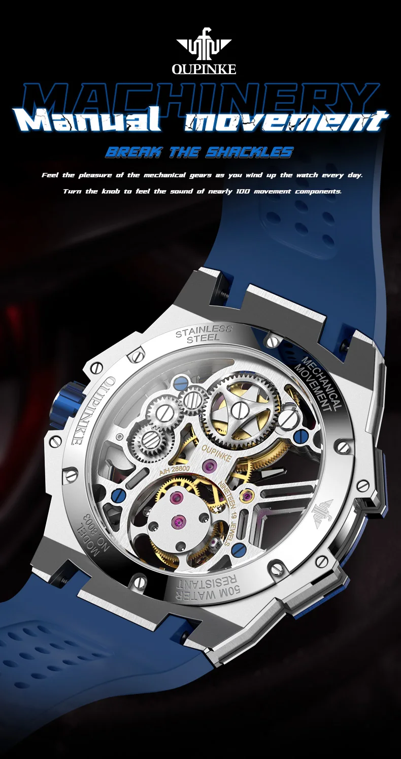 OUPINKE 8003 Tourbillon Men Watch Luxury Brand Hollow out Automatic Mechanical Watch Silicone Waterproof Sapphire Mirror Watch