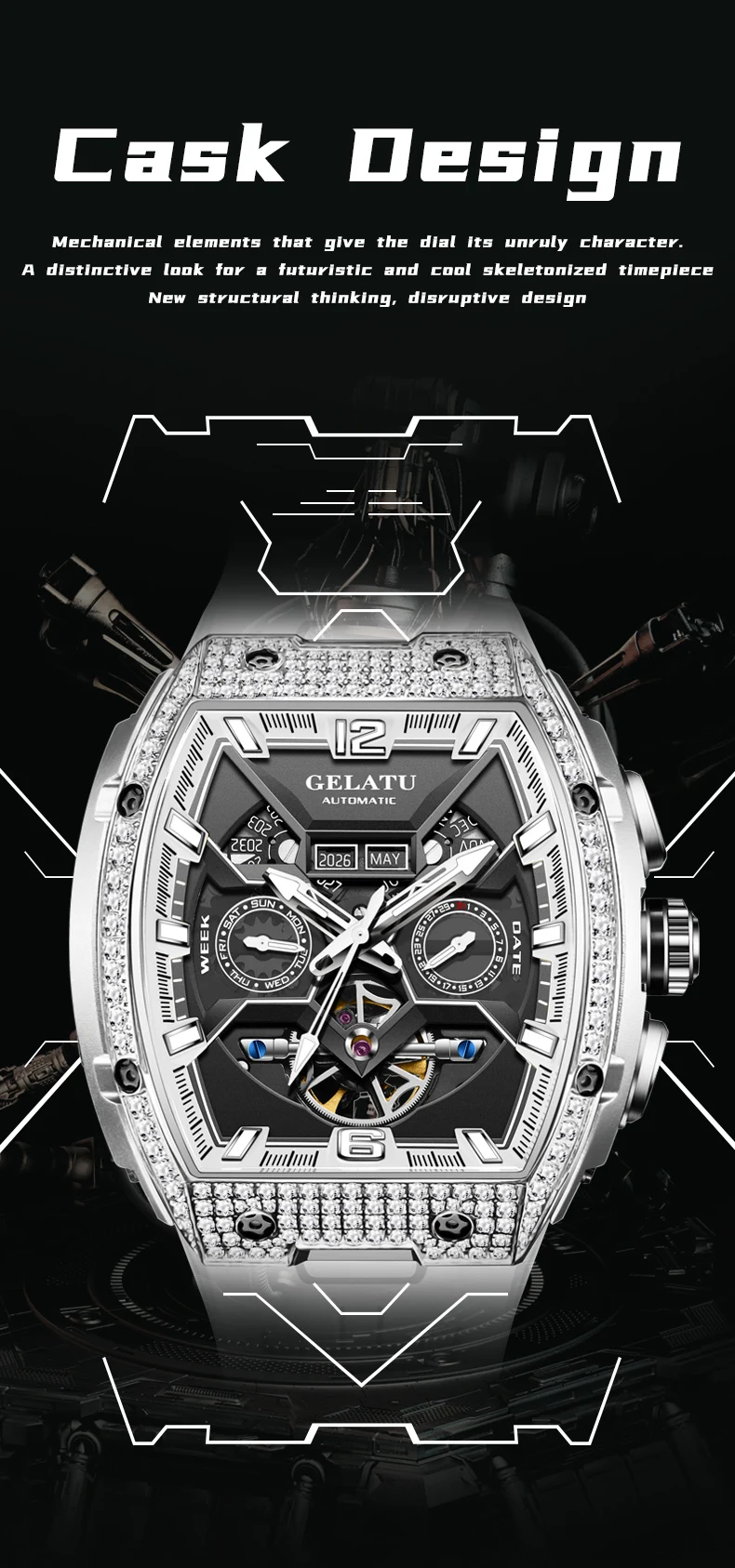 Reloj Hombre GELATU Luxury Top Brand Multifunction Tourbillon Men's Watch High Quality Automatic Mechanical Watch Sapphire