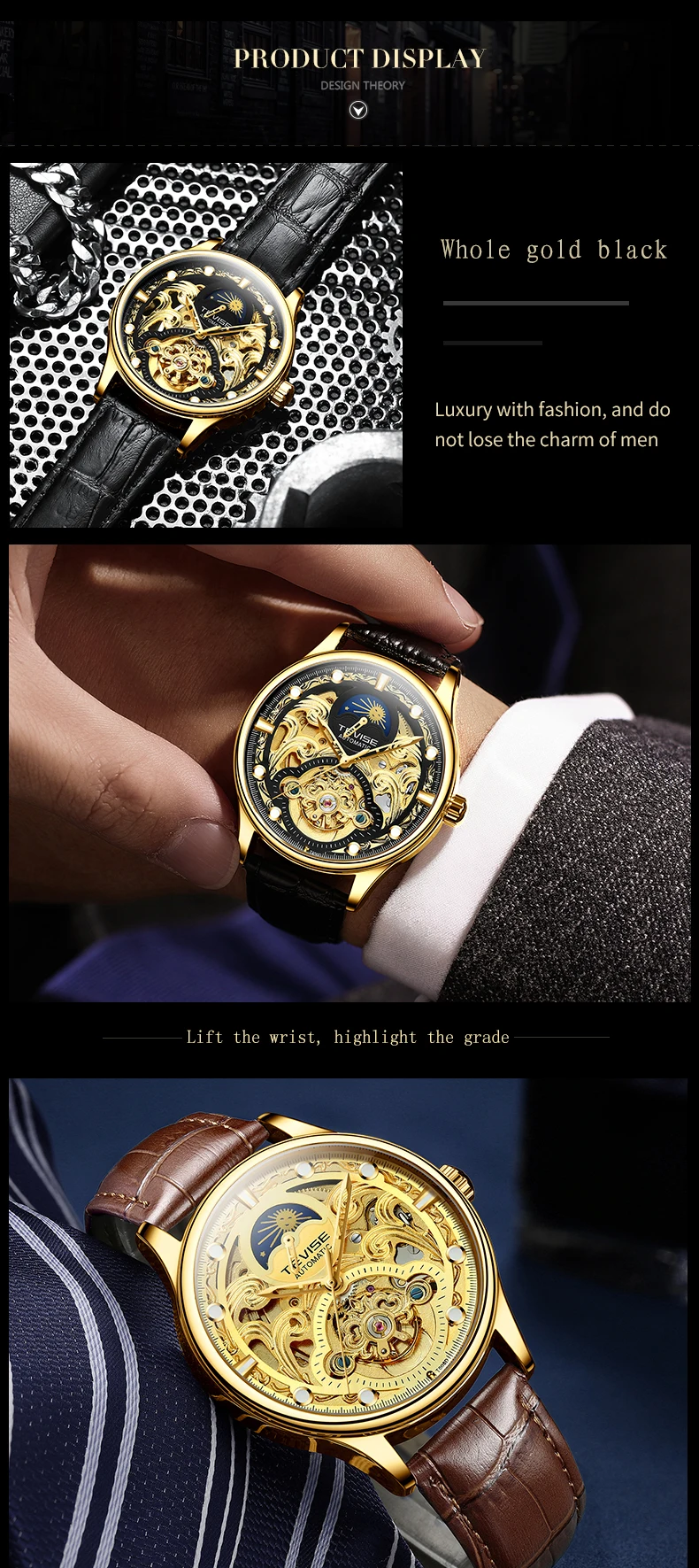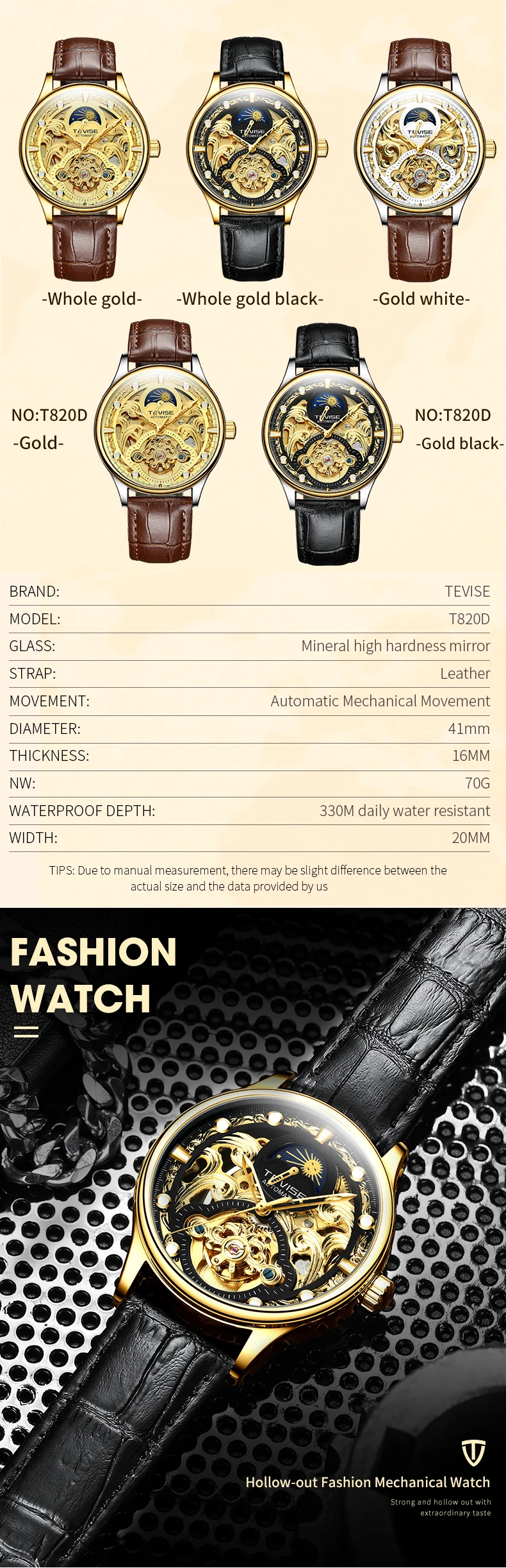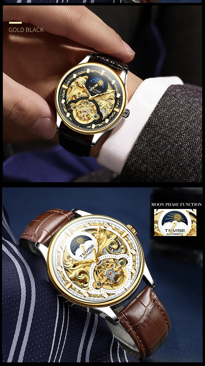 TEVISE New Watch Hollow out Waterproof Business Casual Watch Fully Automatic Men's Mechanical Watch T820D