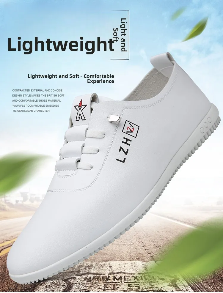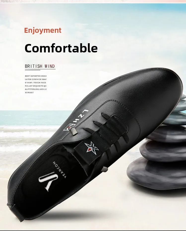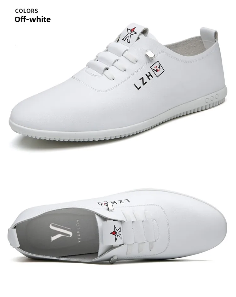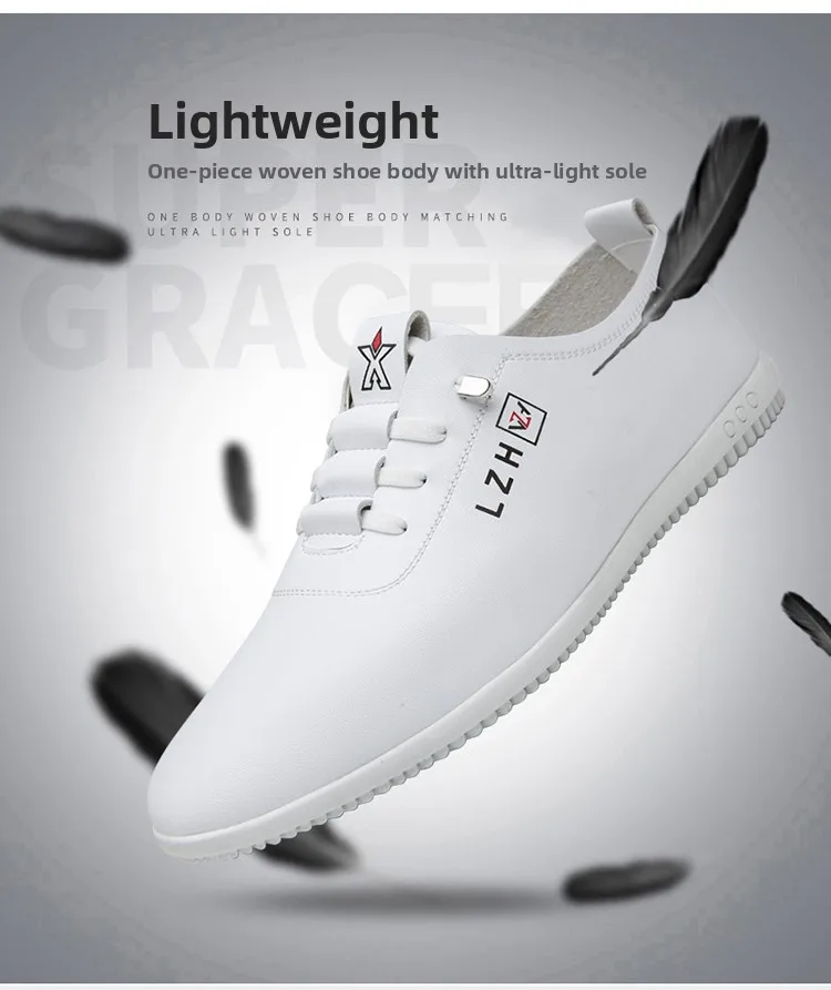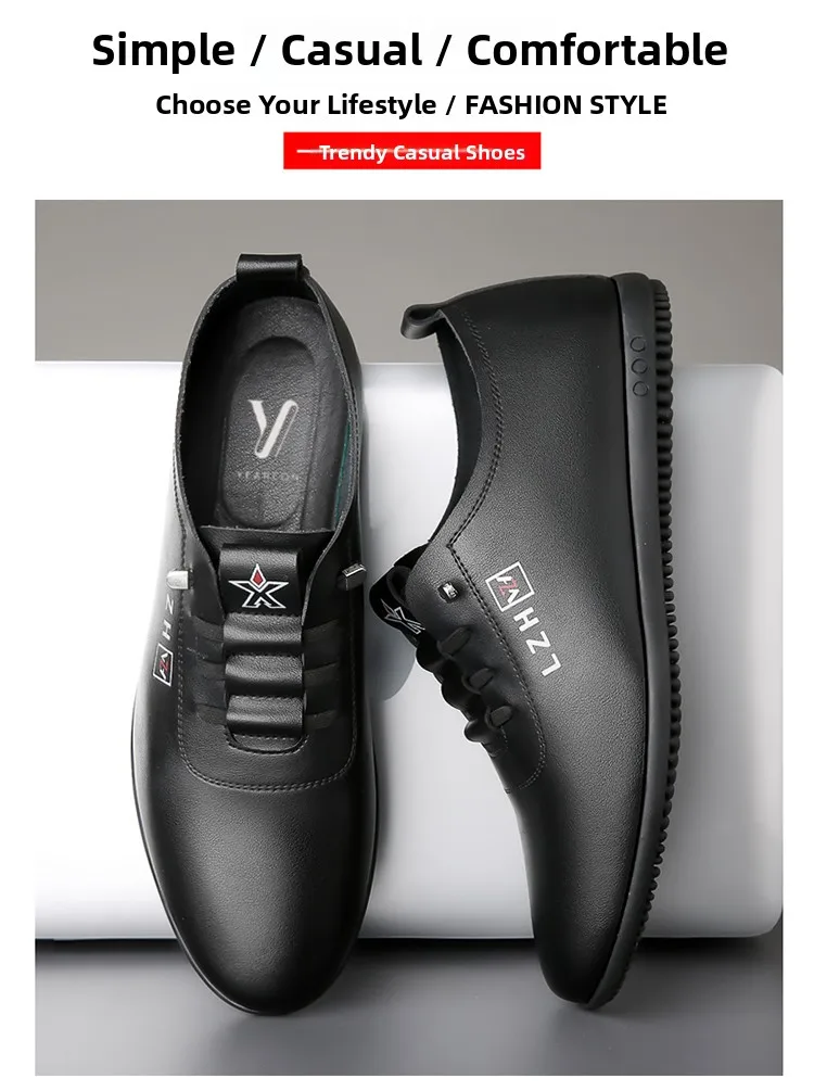 Yearcon Men's Slip-On Leather oes Breathable Thin Faionable Soft Bot And Anti-Slip Casual Lace-Up round Toe Rubber Sole