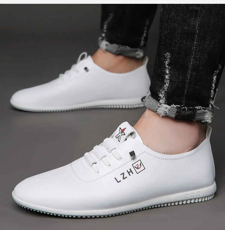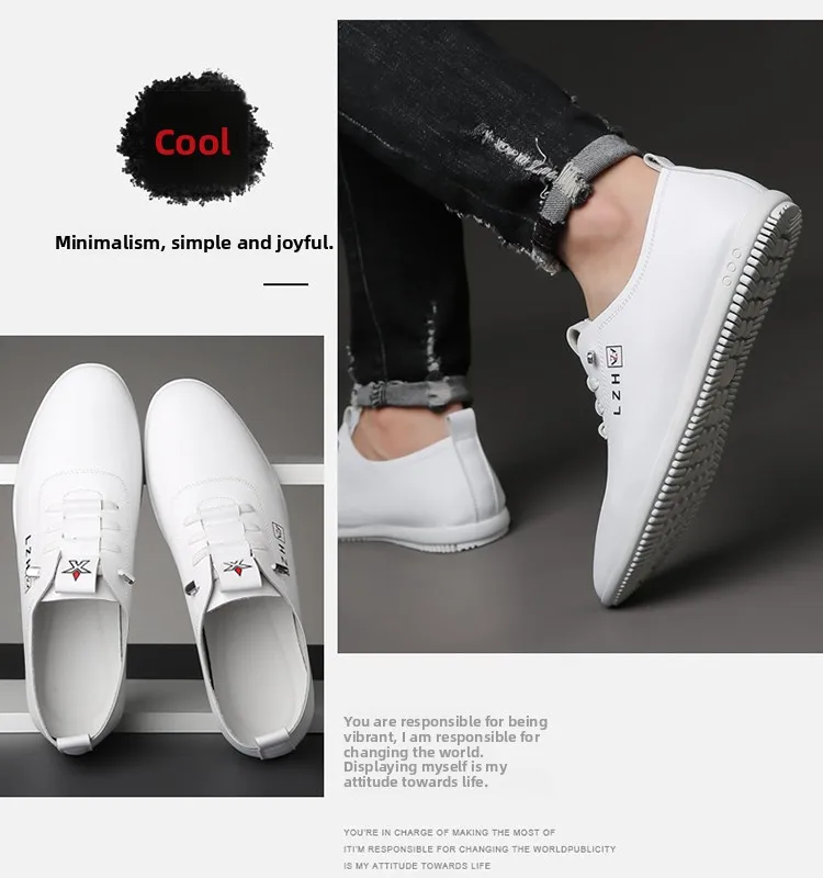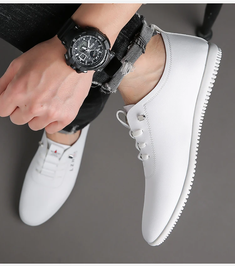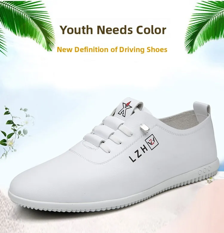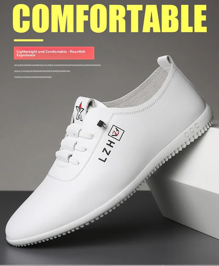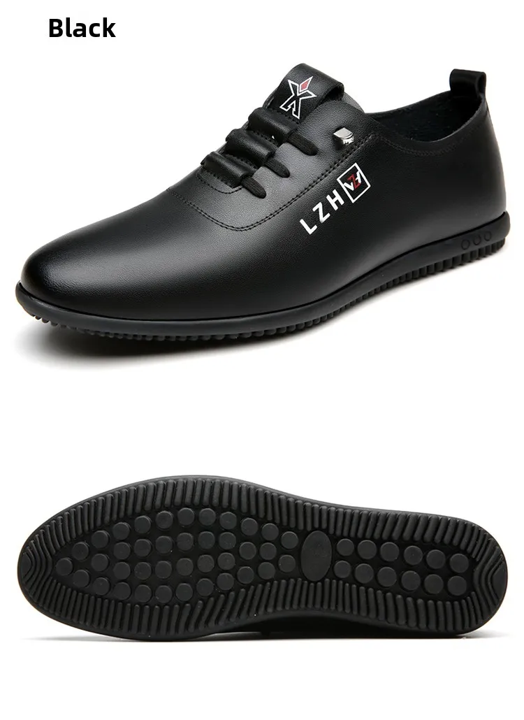 Yearcon Men's Slip-On Leather oes Breathable Thin Faionable Soft Bot And Anti-Slip Casual Lace-Up round Toe Rubber Sole