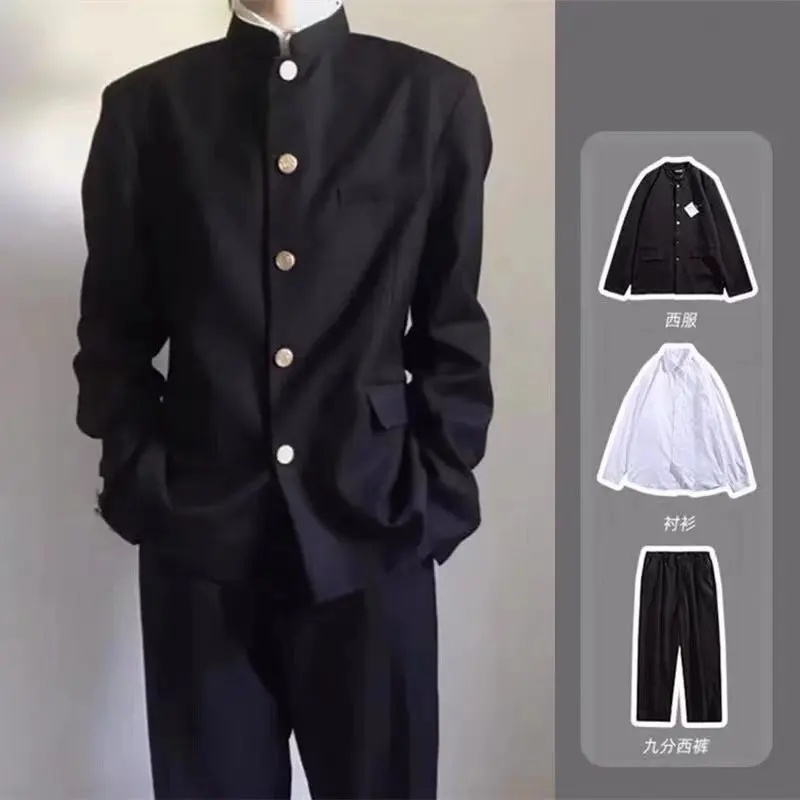 Dk Uniform Suit Men School Uniforms Black Jacket Top Japanese School Jacket Spring Summer New Coat Male Streetwear Mao Suit