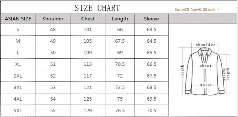 Note: We sell ASIAN SIZE is about 2-3 size SMALLER than US,UK,AU,EU size.Please choose the size according to our size form.All the dimensions we have personally measured and reality try. When you place the order please live the message with your Shoulder(CM) and Chest(CM) .We will help you to confirm the size.Think you for buying !