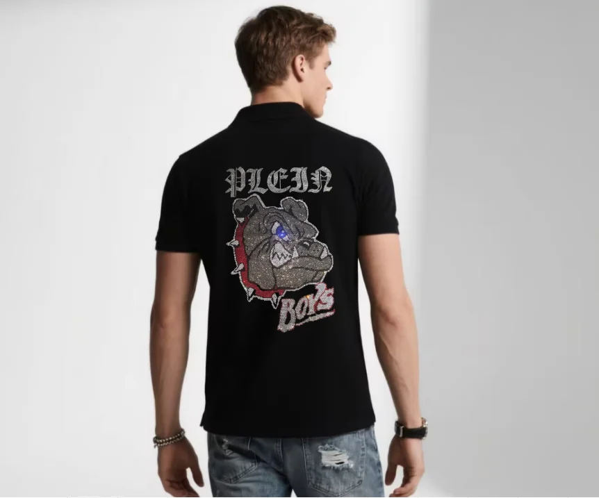 Men's Polo Shirt from Designer Brand, Fashionable and Well-Tailored with Rhinestones