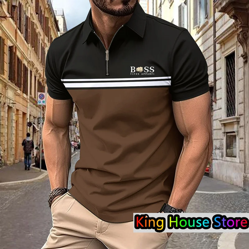 Men's Polo Shirt Summer Streetwear Boss 3d Printe Golf Short Sleeve Business Casual Zipper Polo Sportswear Male Clothing For Men