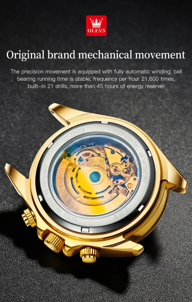 OLEVS 6638 Men Watch Brand Mechanical Movement Automatic Watch Men Luxury Waterproof Calendar Timing Code Original Men Watch