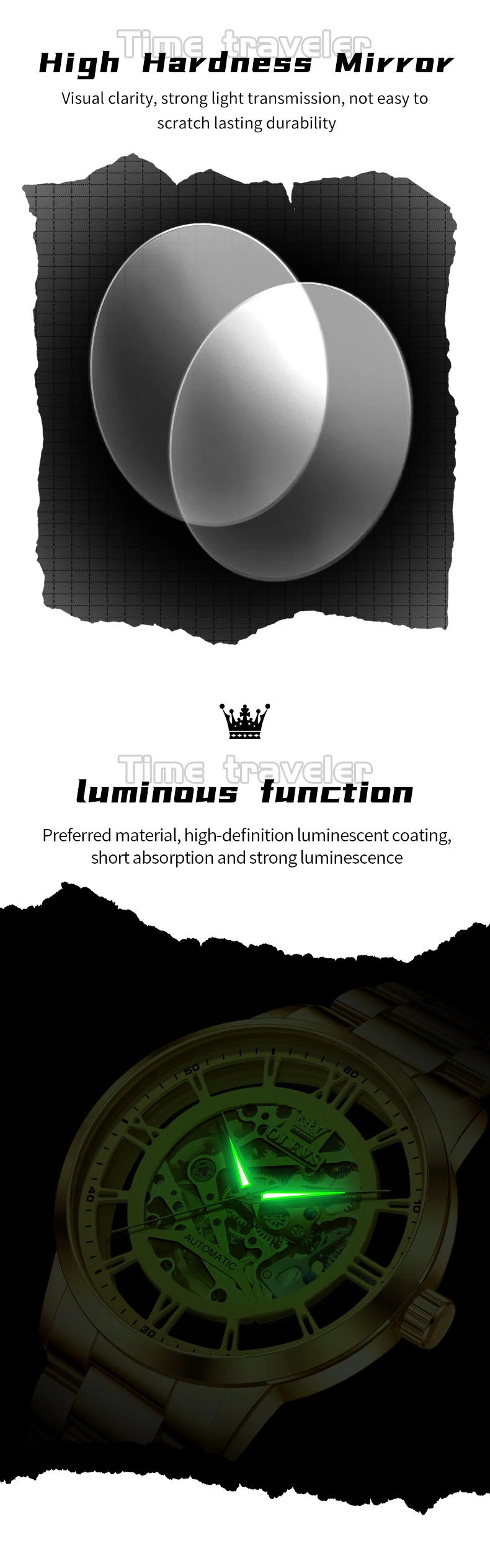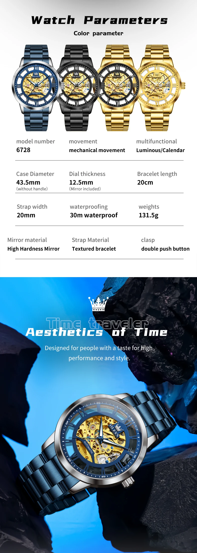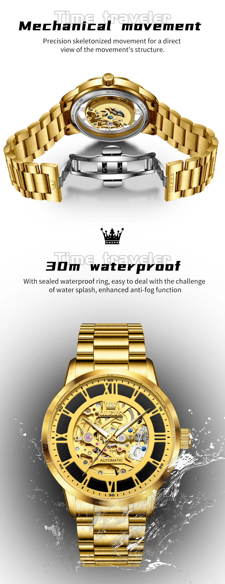 OLEVS Men Gold watch Skeleton Luxury Watch automatic mechanical Classic Wristwatches For Men Waterproof High Quality 6728