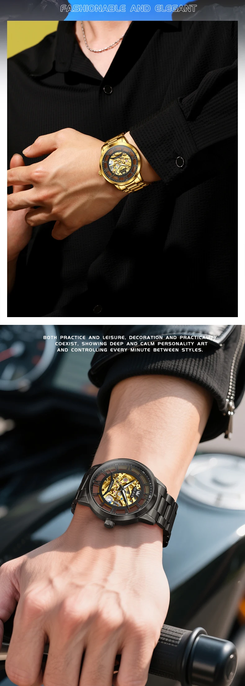 This men’s skeleton mechanical watch features a genuine automatic movement, powered by the natural motion of your wrist—no battery required. (For first-time use or if not worn for a long time, manual winding is recommended to ensure accurate timekeeping.)
