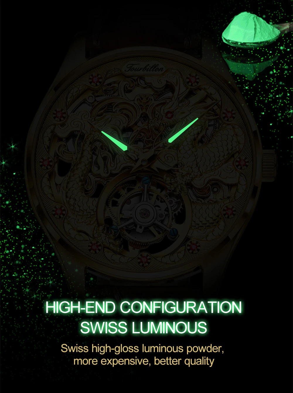 Feature: tourbillon,Skeleton,Luminous,Shock Resistant,DIVER,water proof