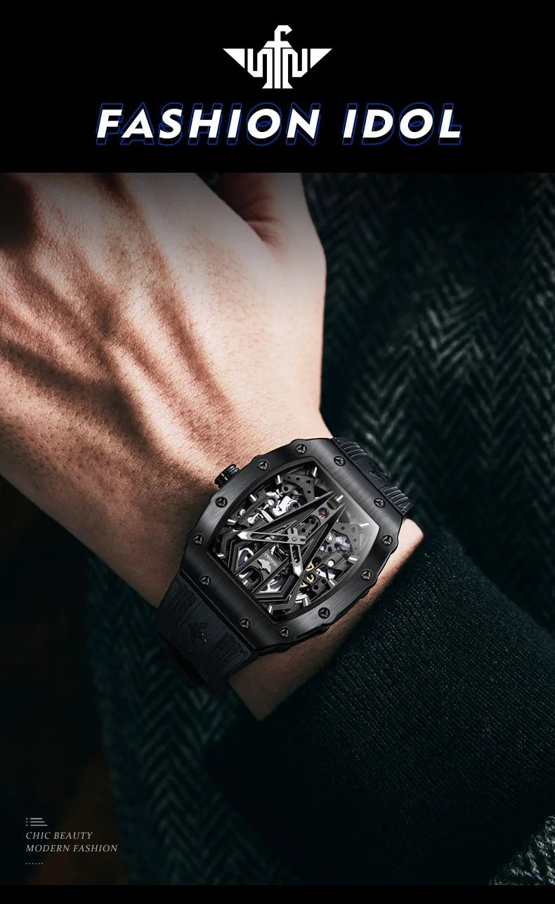 OUPINKE 3179 Men's Watches Top Brand Skeleton Tonneau Automatic Mechanical Luxury Original Watch for Men 5m Waterproof Man Watch