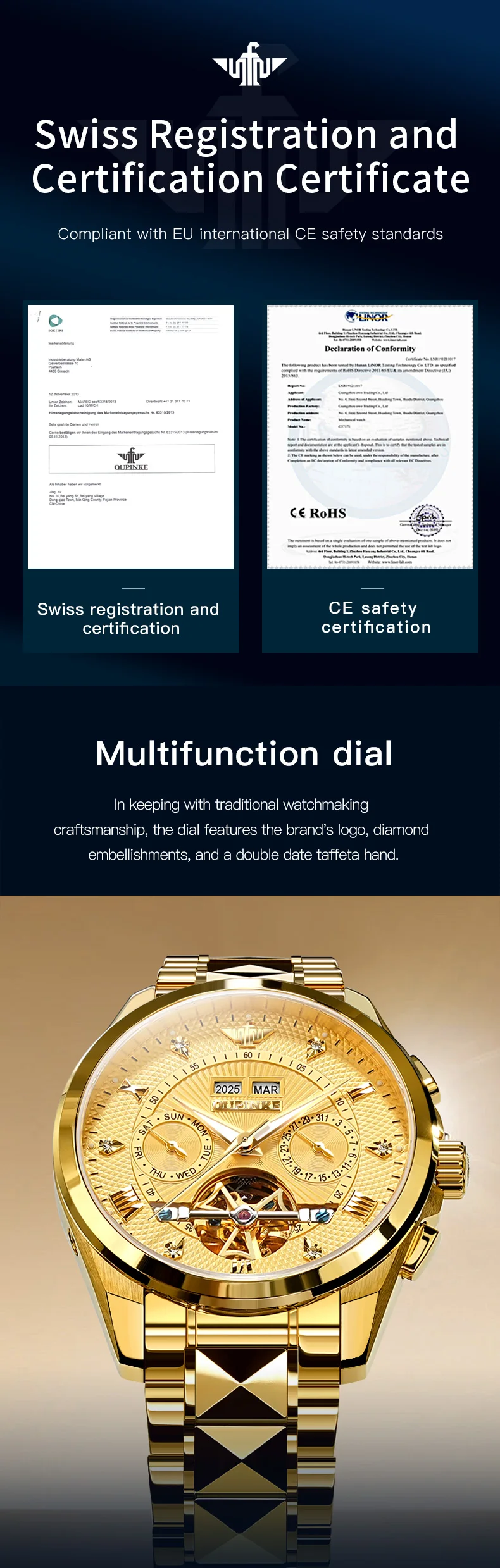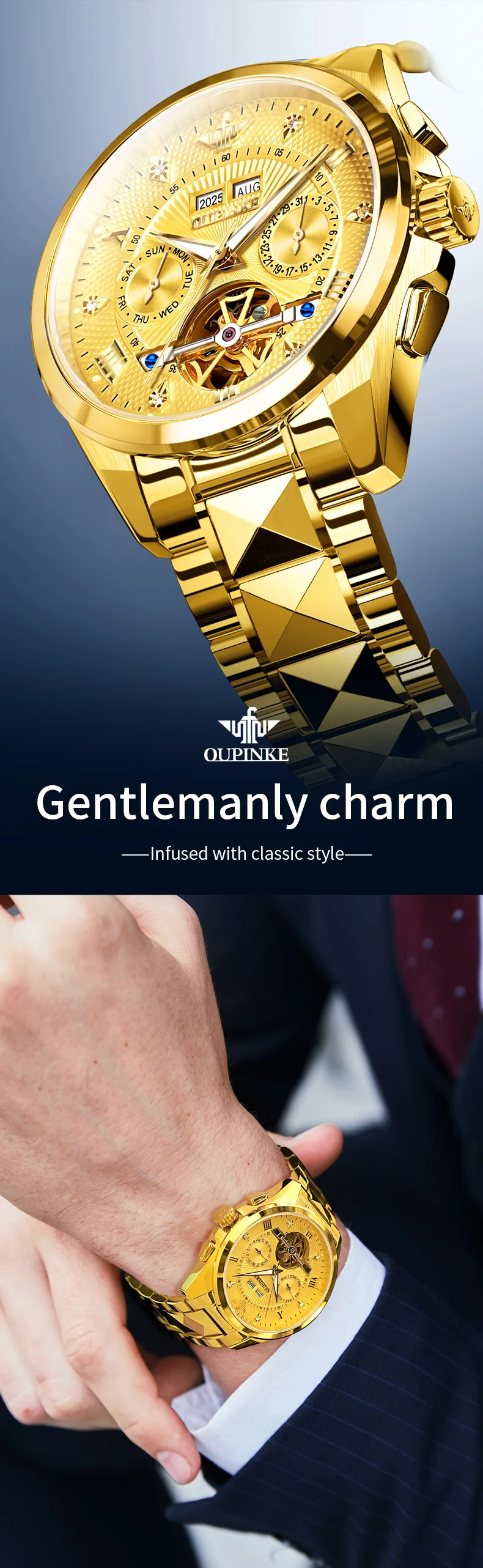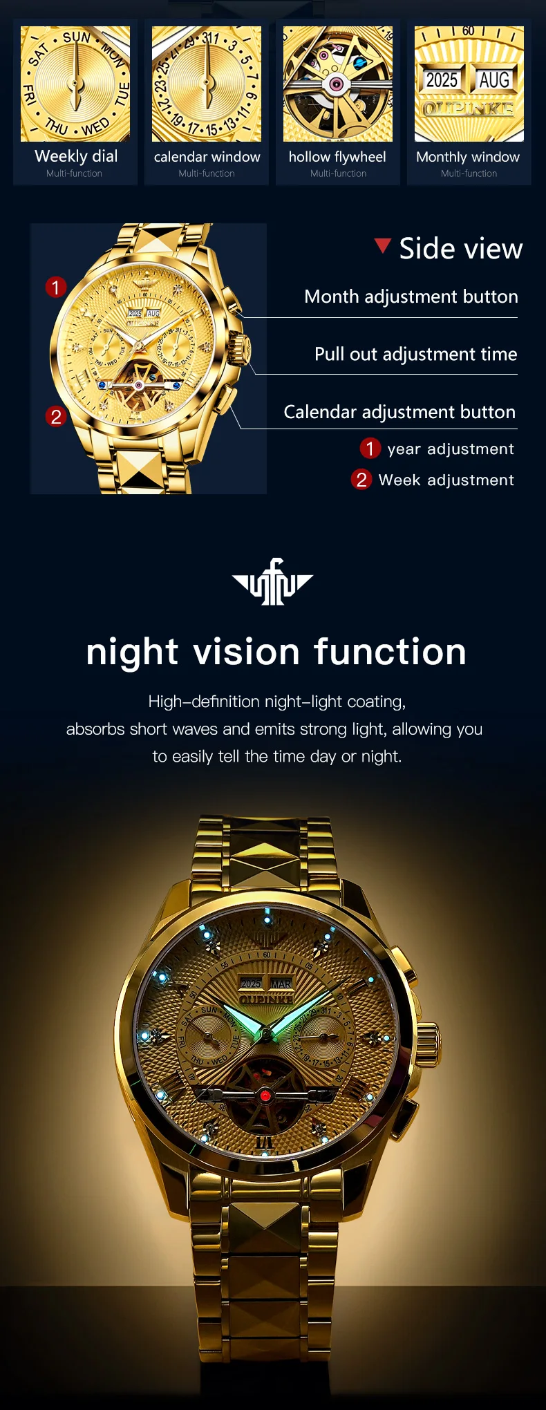 OUPINKE 3270 Mens Watch Automatic Mechanical Watch Waterproof Luminous Watches For Man Tungsten Steel Imported Movement Reloj