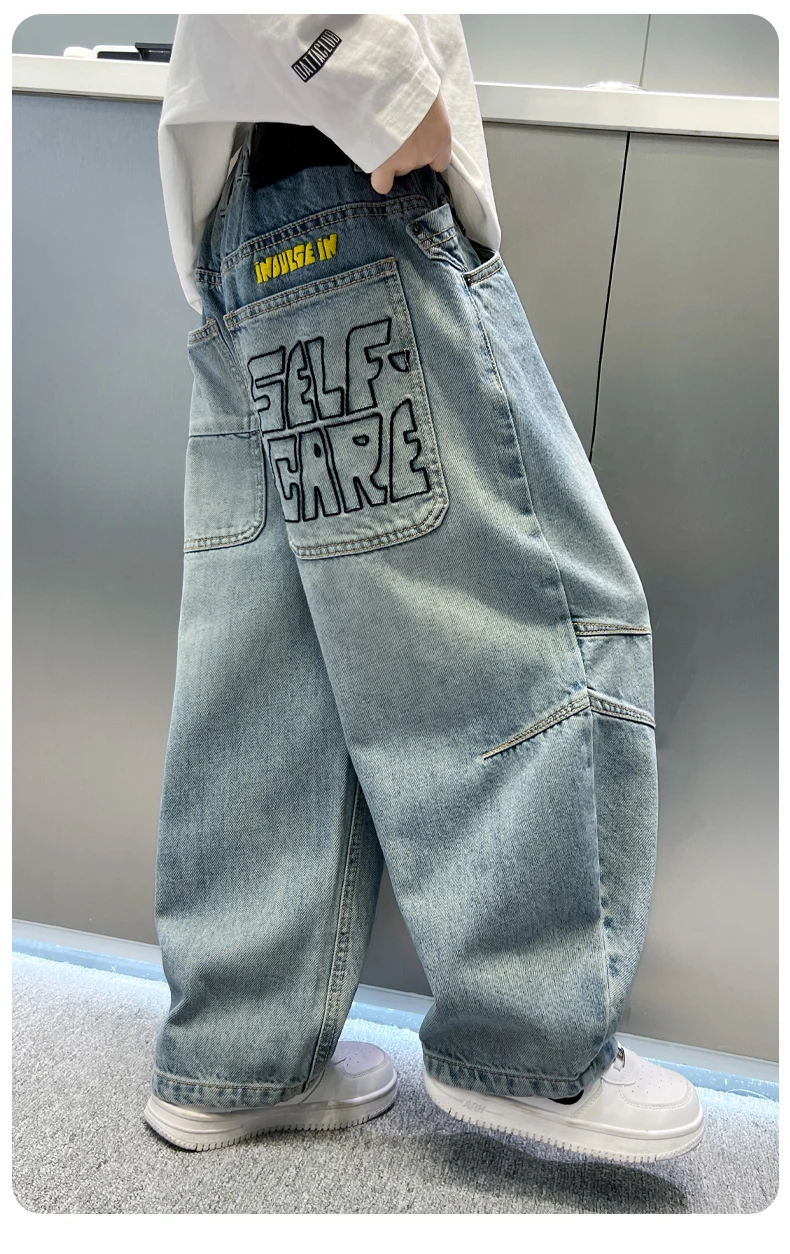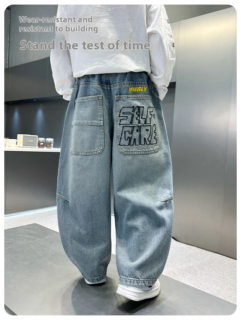 personalized workwear jeans Spring and Autumn 2025 Spring and Autumn New Straight Pants Boys  Wide Legs Handsome Trendy 5-15 yea