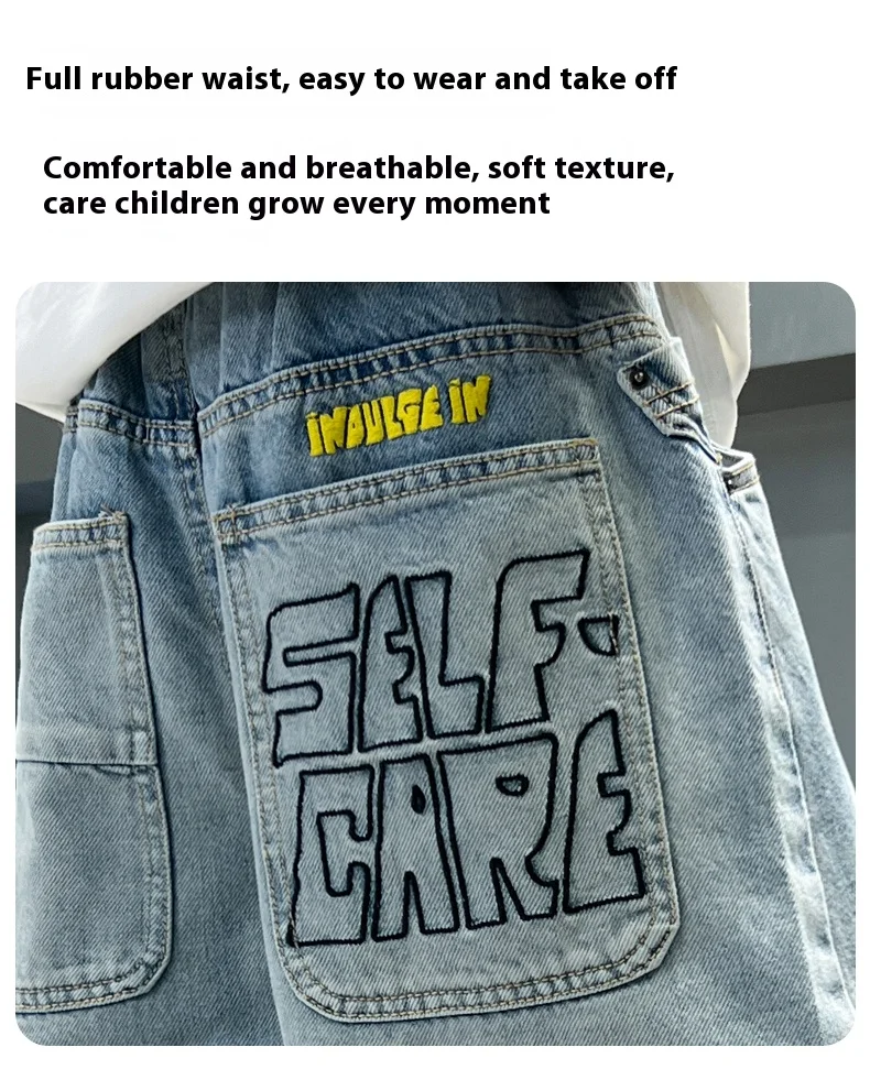 personalized workwear jeans Spring and Autumn 2025 Spring and Autumn New Straight Pants Boys Wide Legs Handsome Trendy 5-15 yea