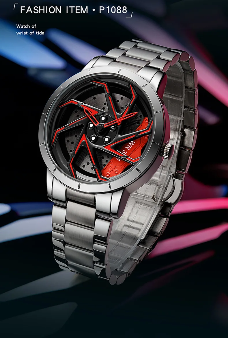SANDA P1088 Hot Sell New Stainless Steel Band Watch Premium Quartz Movement Shaped 360 Rotating Car Wheel Dial Relogio Masculino